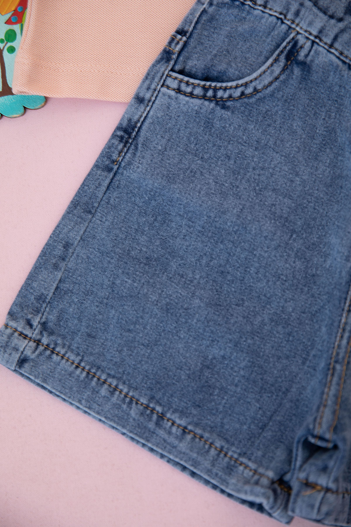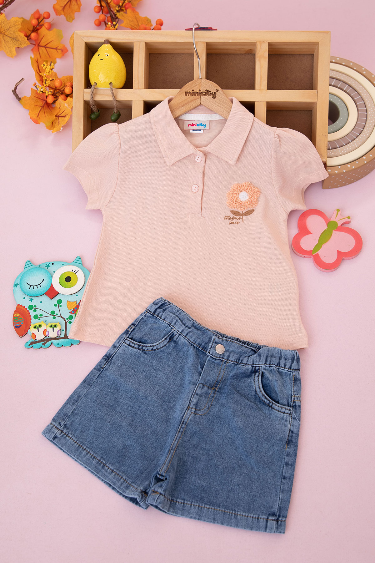 Kız Çocuk Flower Kot Şortlu Takım - 326108 (3-7 Yaş)
