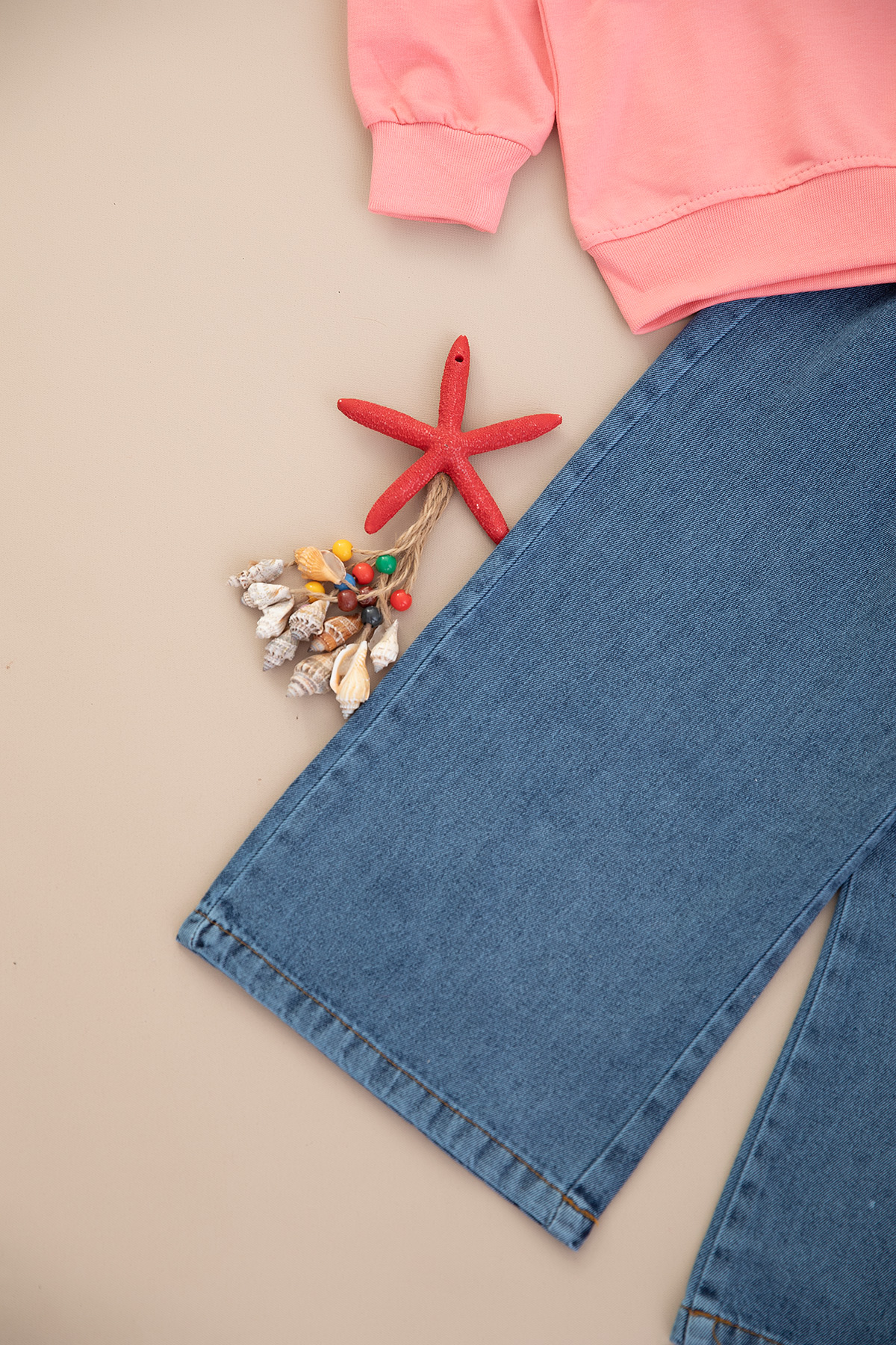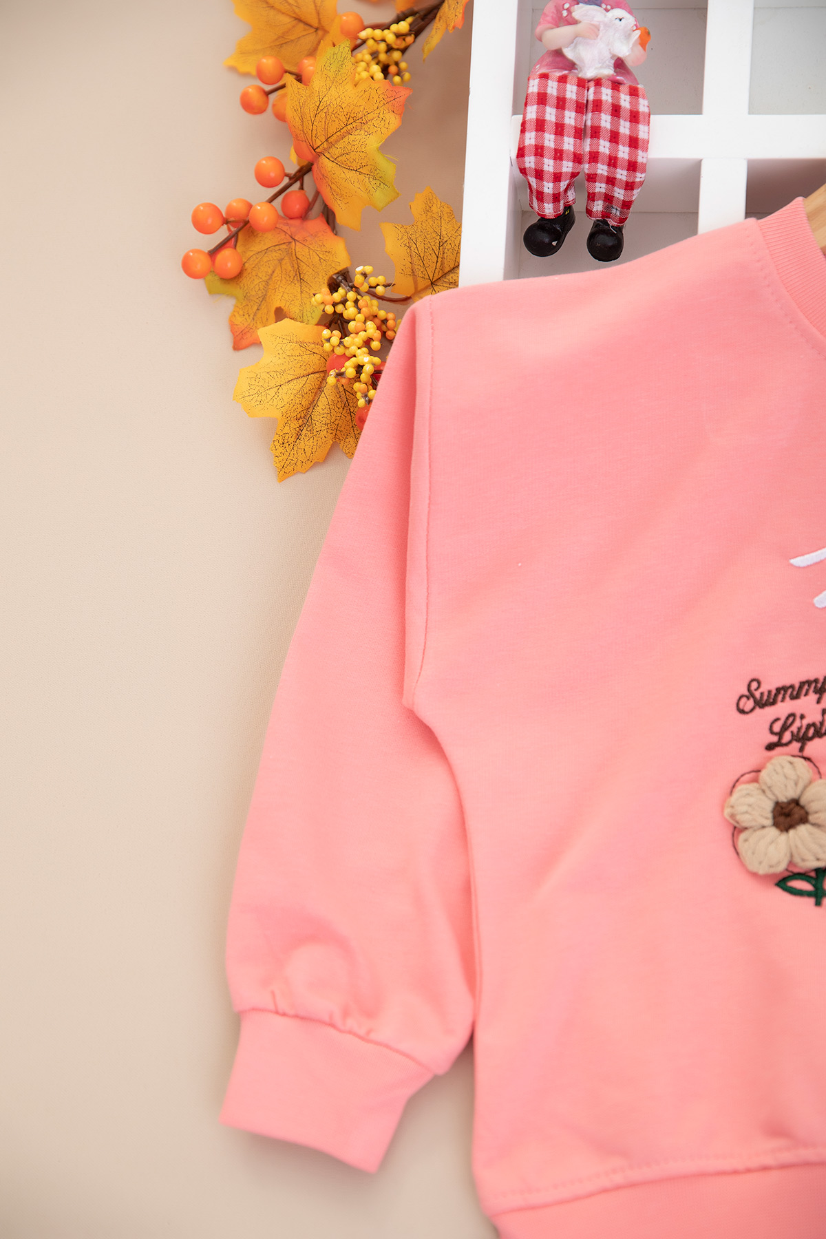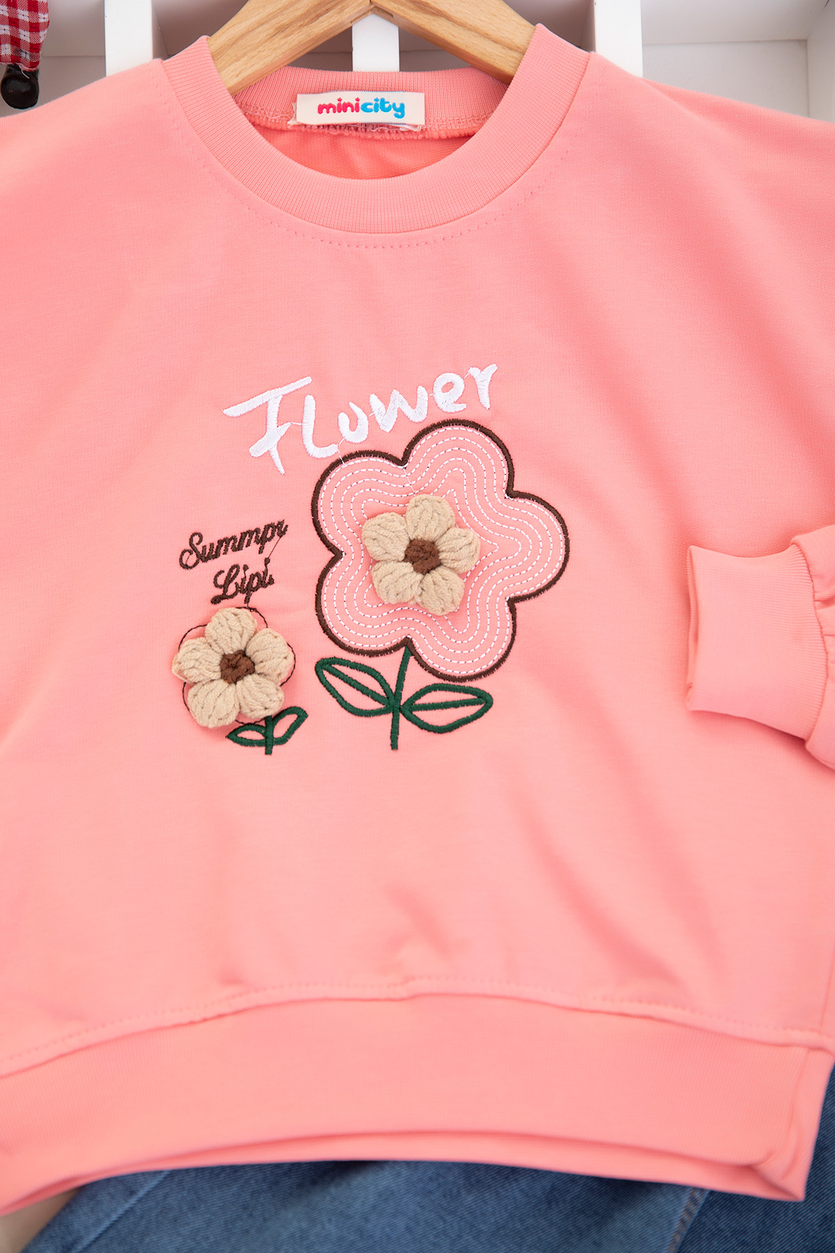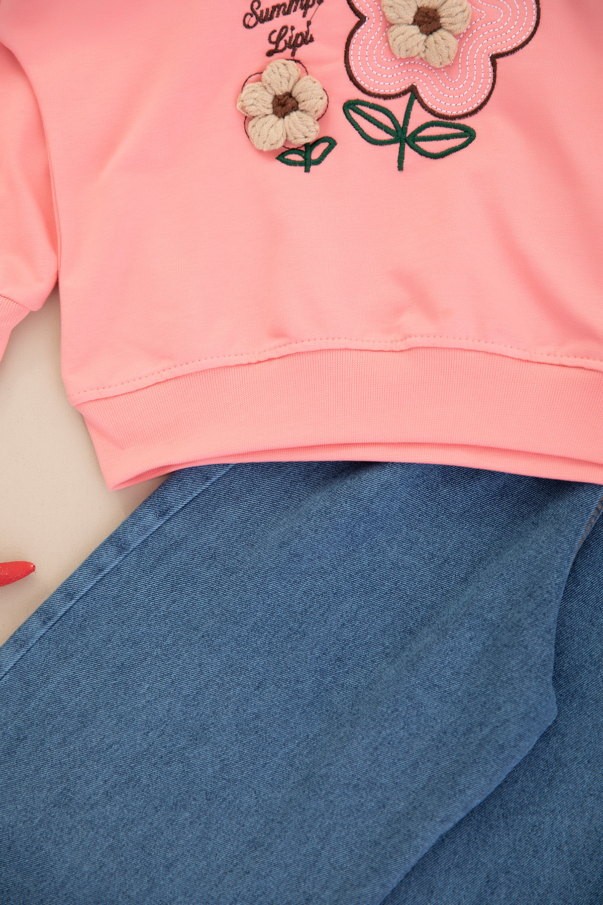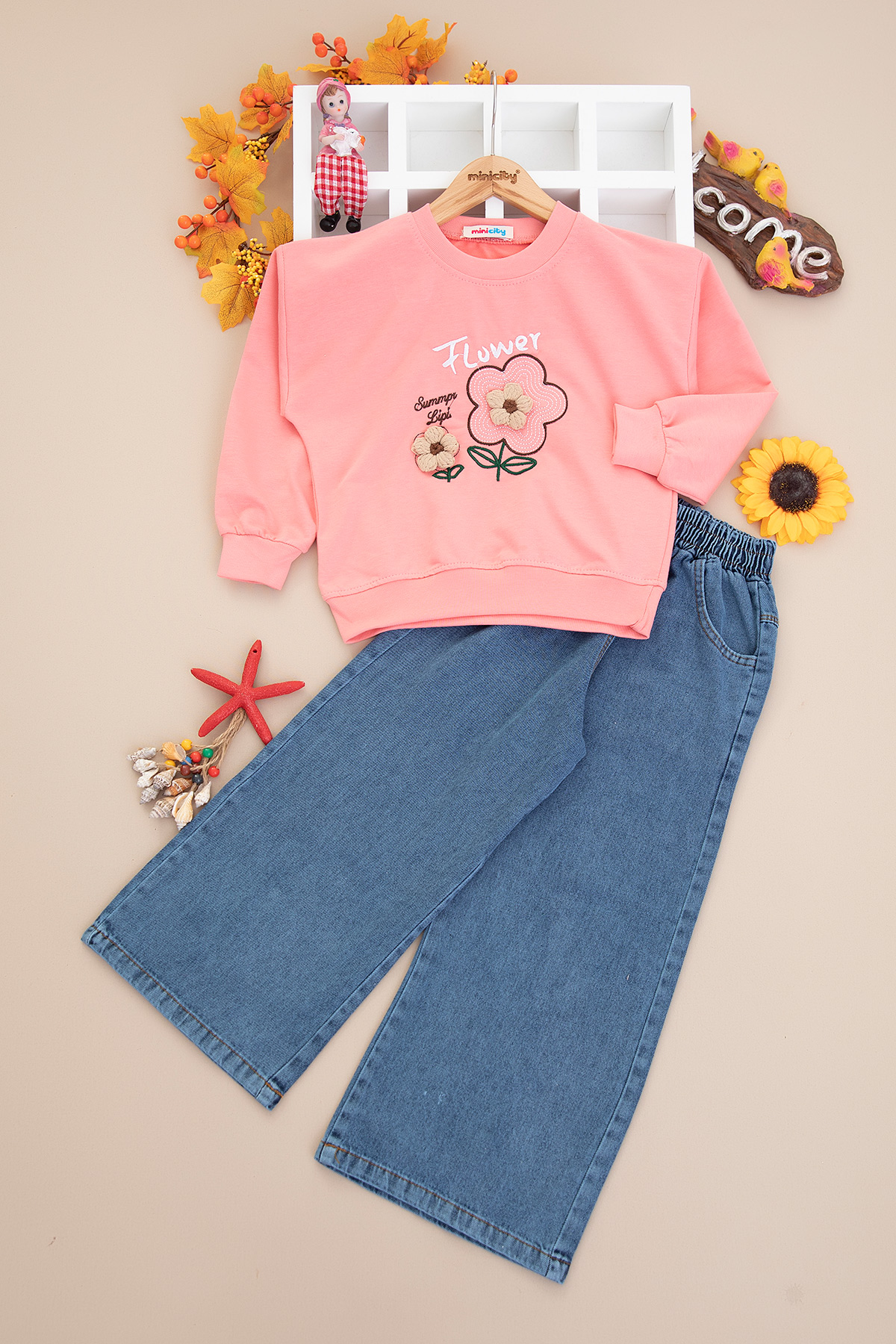 Kız Çocuk Flower Nakışlı Pantolon Takım - 2641 (6-10 Yaş)