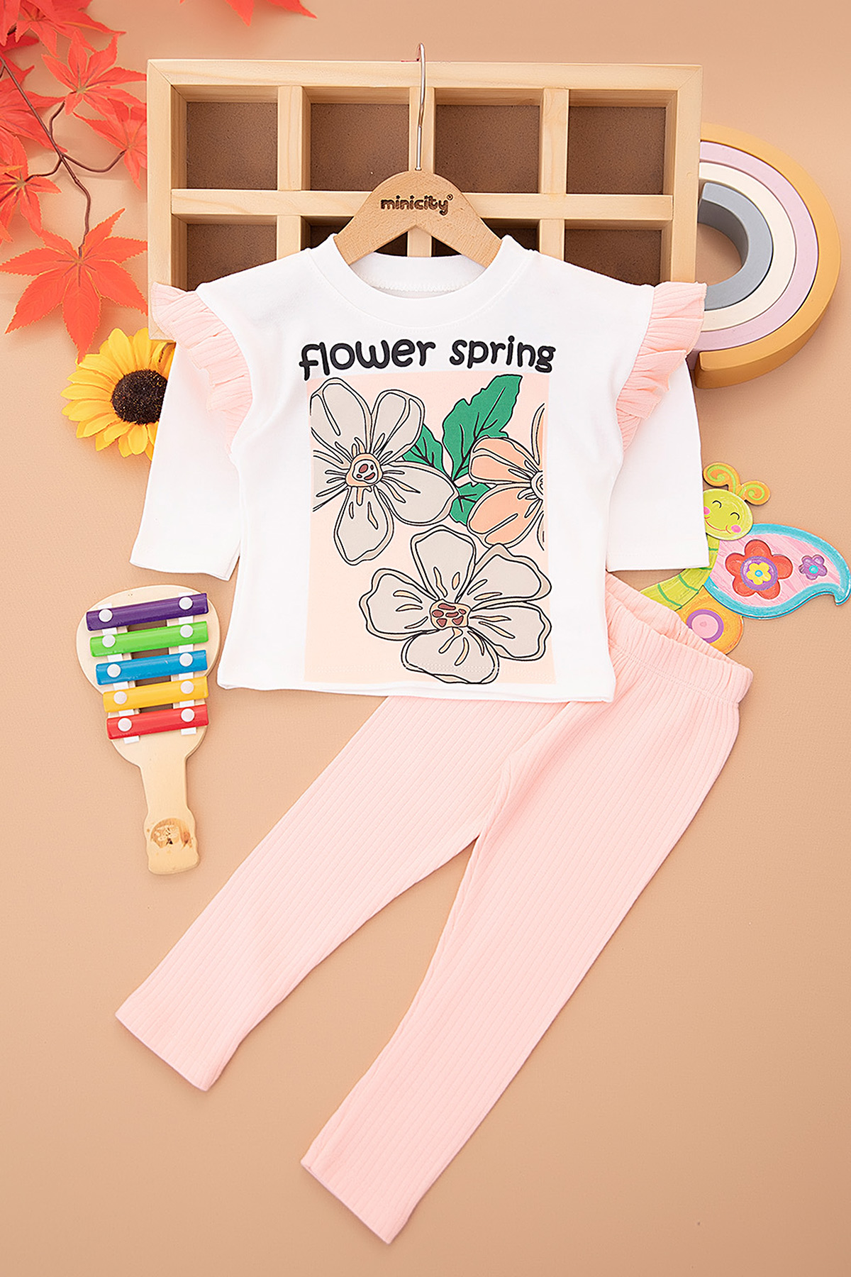 Kız Çocuk Flower Spring Baskılı Takım - 2038 (2-5 Yaş)