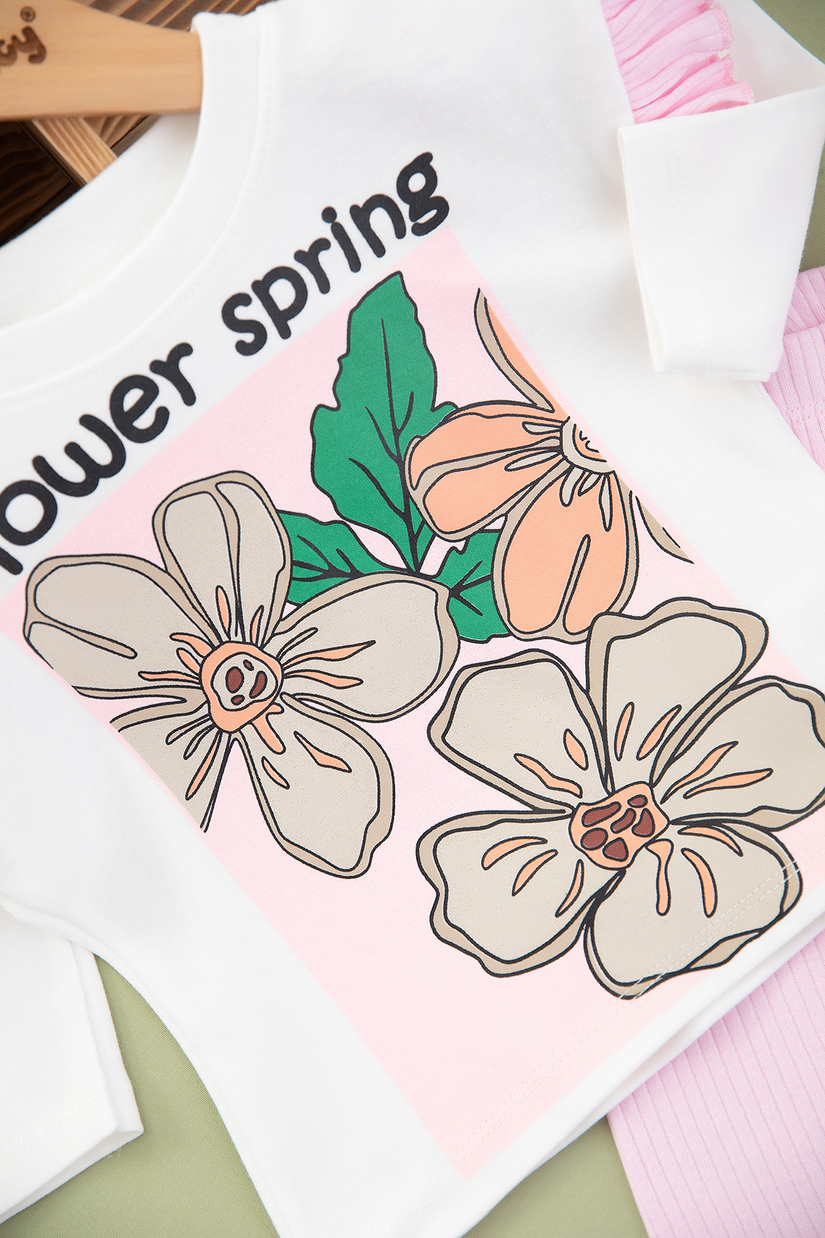 Kız Çocuk Flower Spring Baskılı Takım - 2038 (2-5 Yaş)