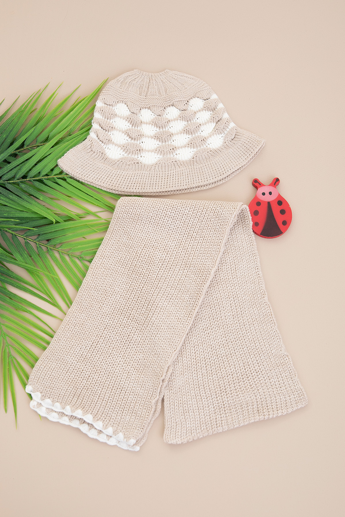 Kız Çocuk Fötür Şapkalı Atkı Takım - 9006