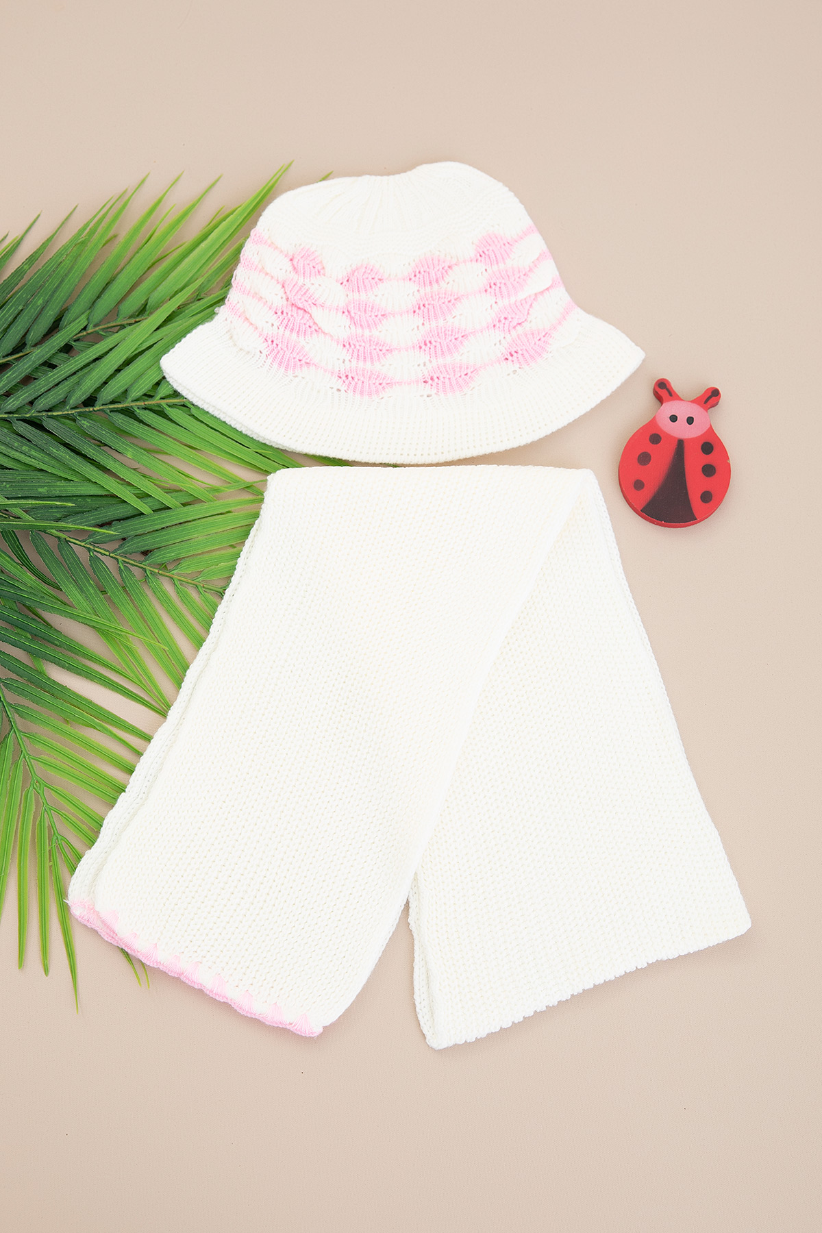 Kız Çocuk Fötür Şapkalı Atkı Takım - 9006