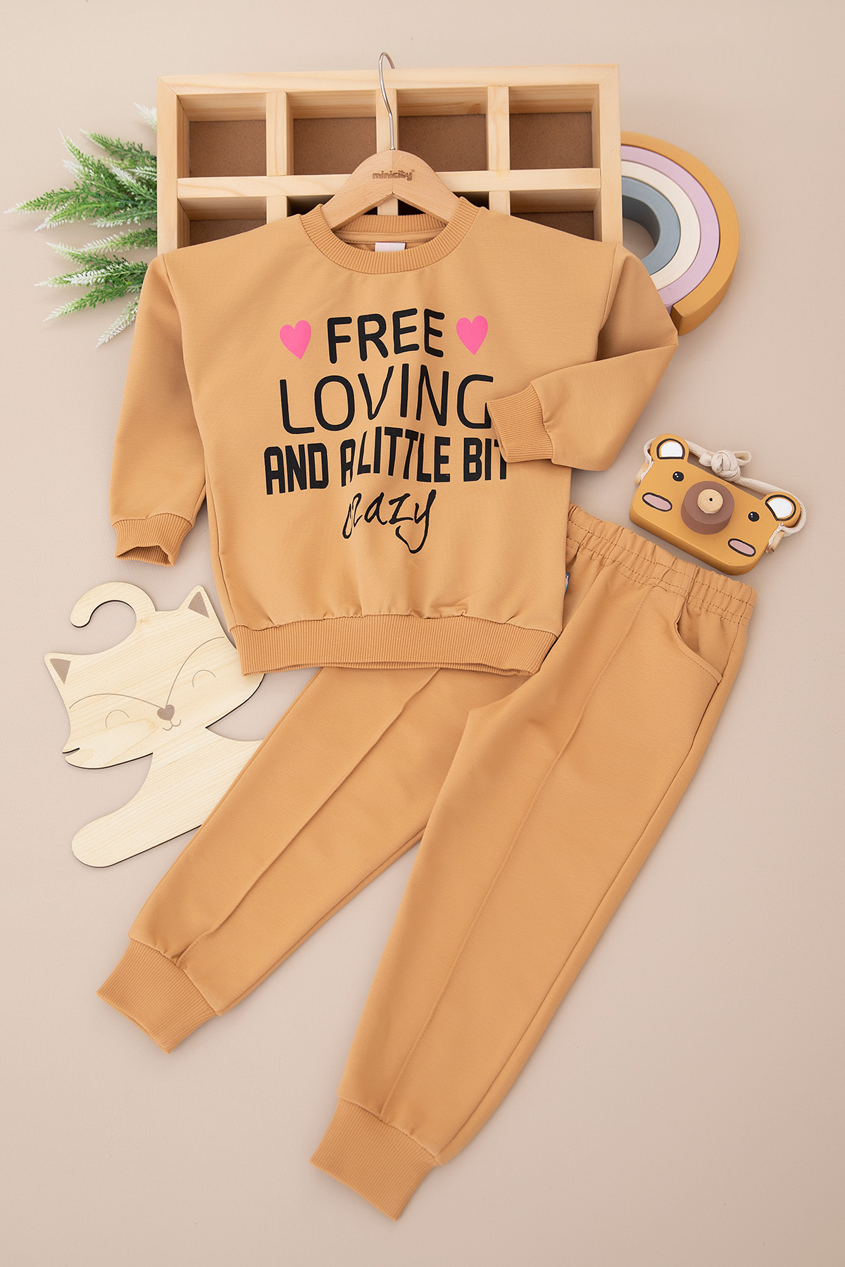 Kız Çocuk Free Loving Baskılı Takım - 24078 (7-10 Yaş)