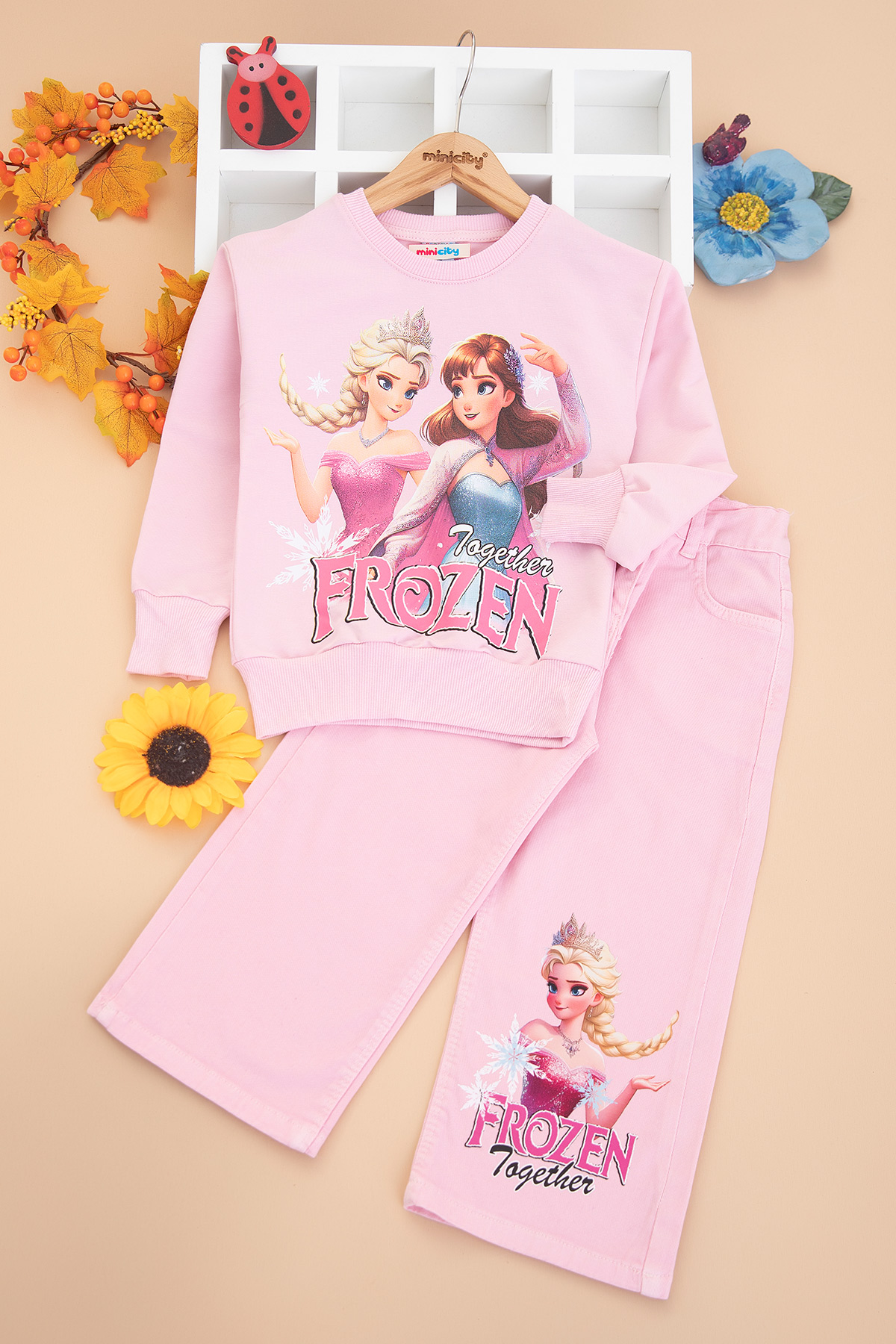 Kız Çocuk Frozen Kot Pantolon Takım - 6452 (3-10 Yaş)