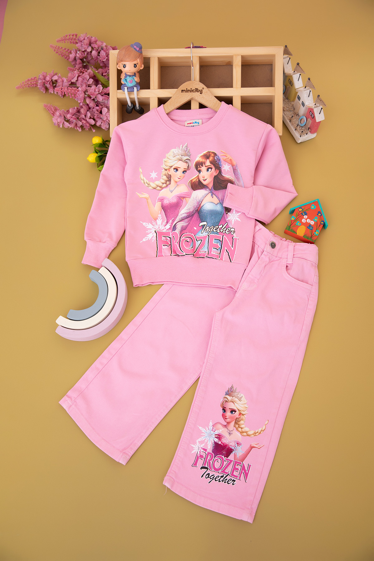 Kız Çocuk Frozen Kot Pantolon Takım - 6452 (3-10 Yaş)