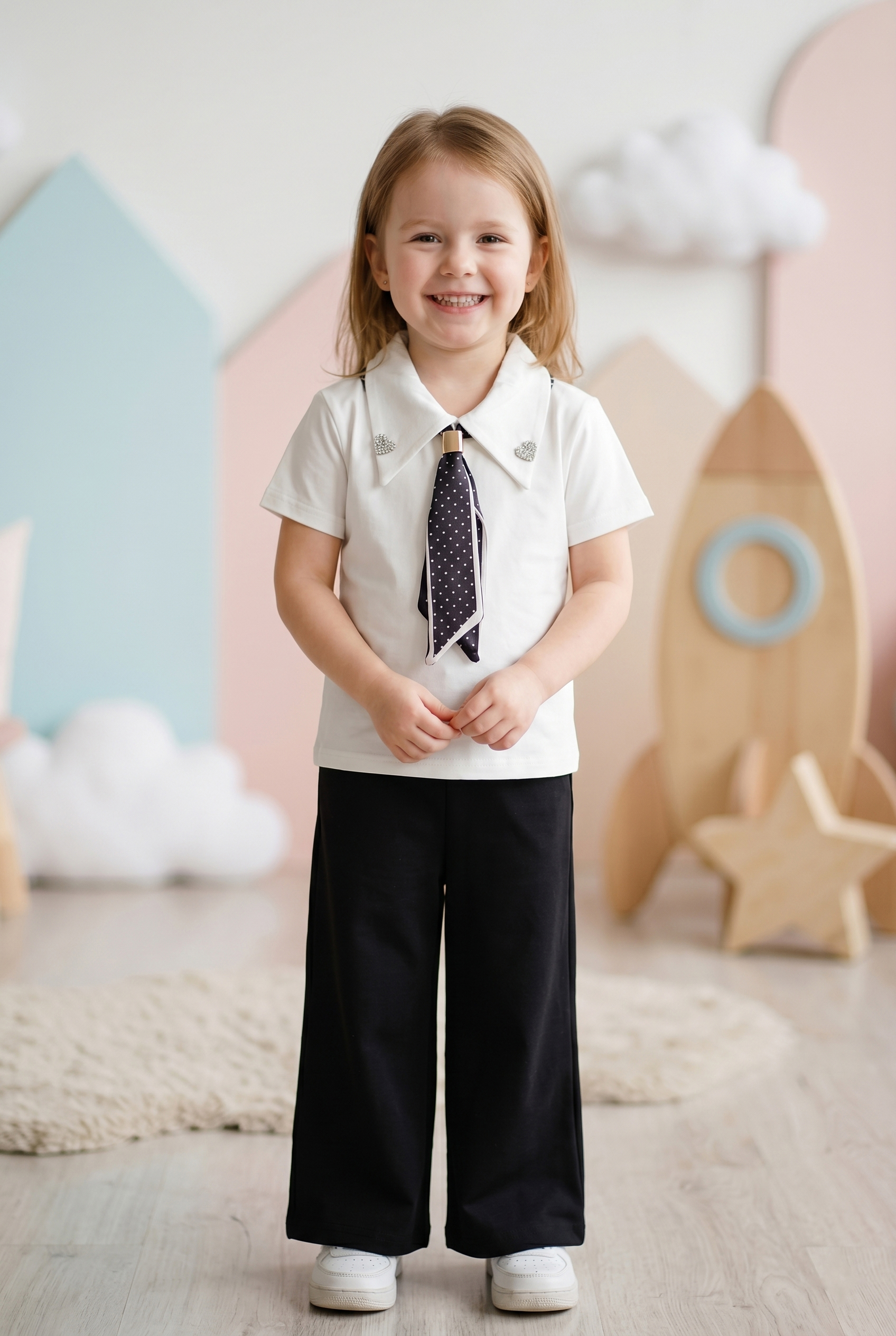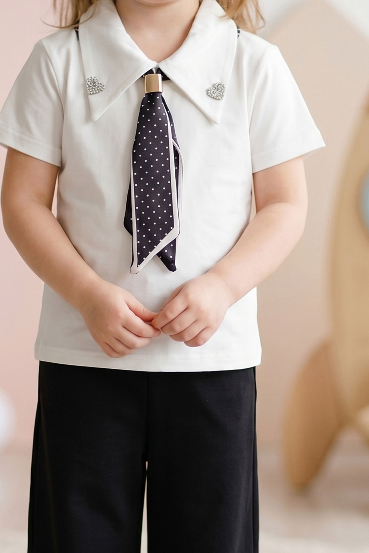 Kız Çocuk Fularlı Kalpli Kaprili Takım (3-10 Yaş)