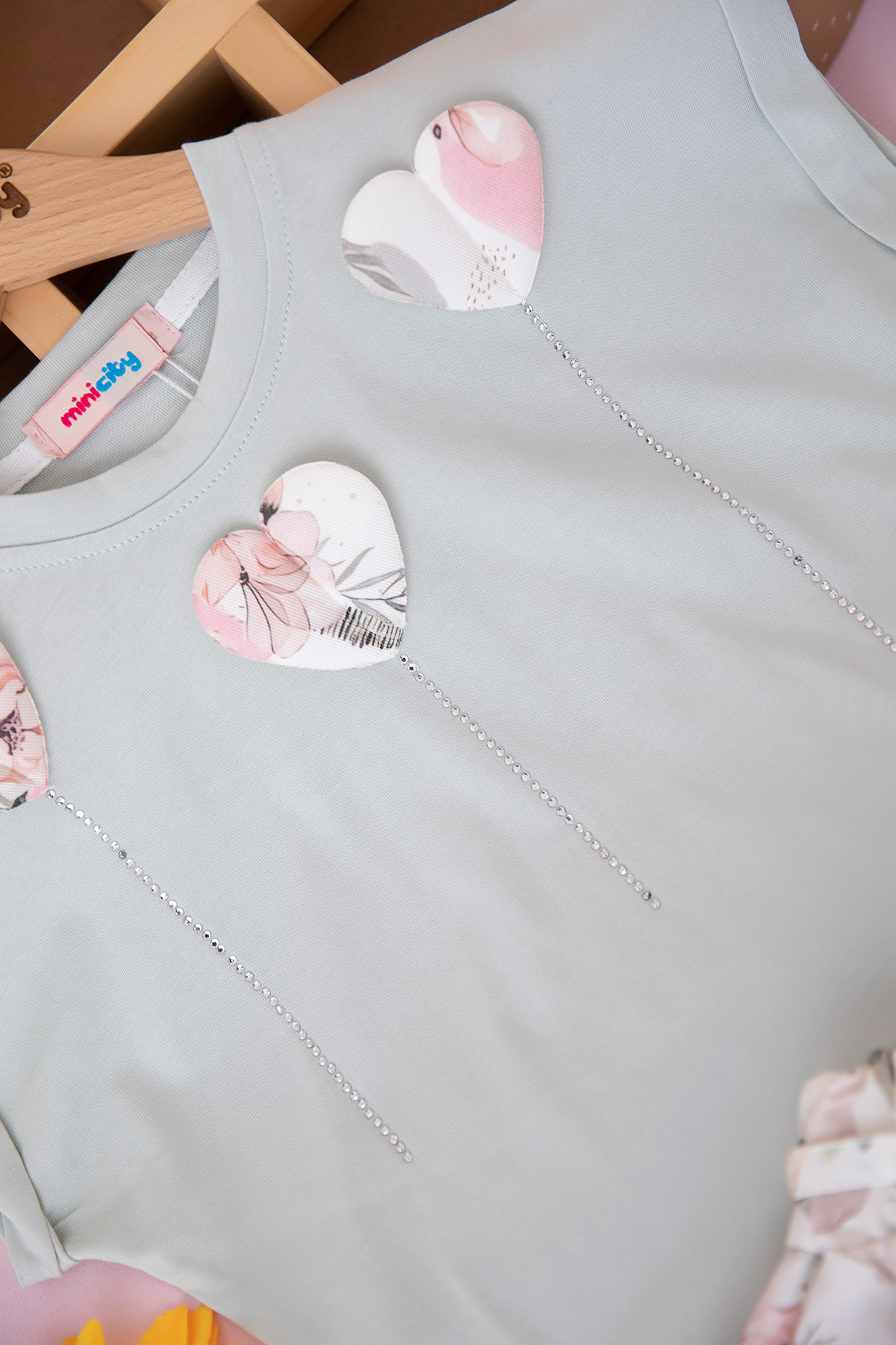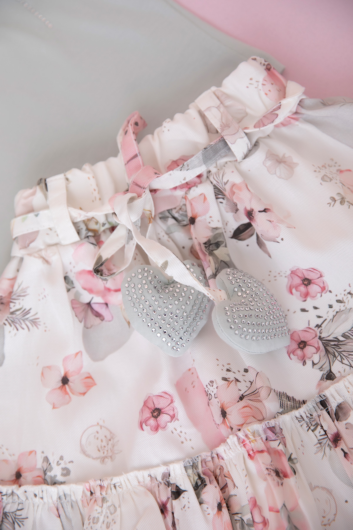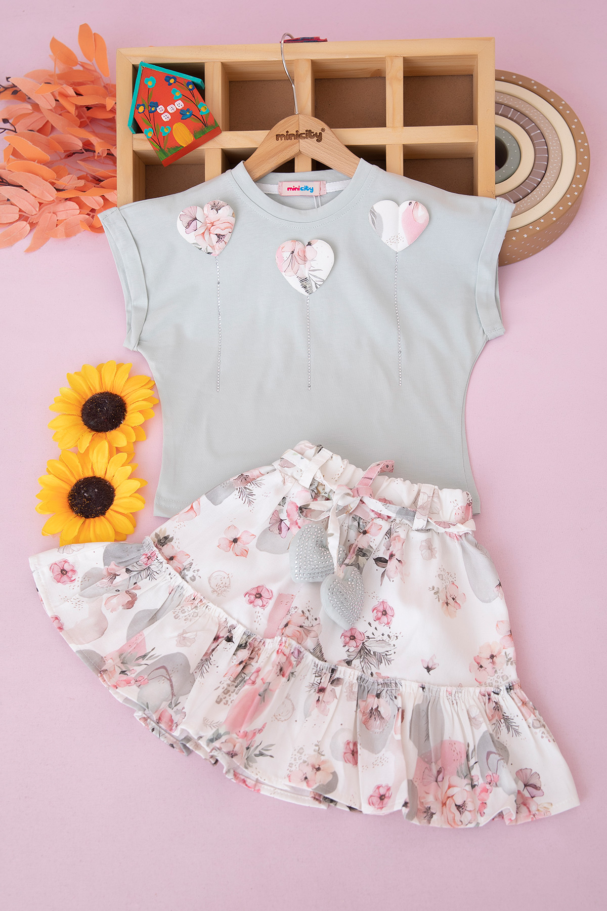 Kız Çocuk Gabardin Kalpli Etekli Takım - 2072 (4-10 Yaş)