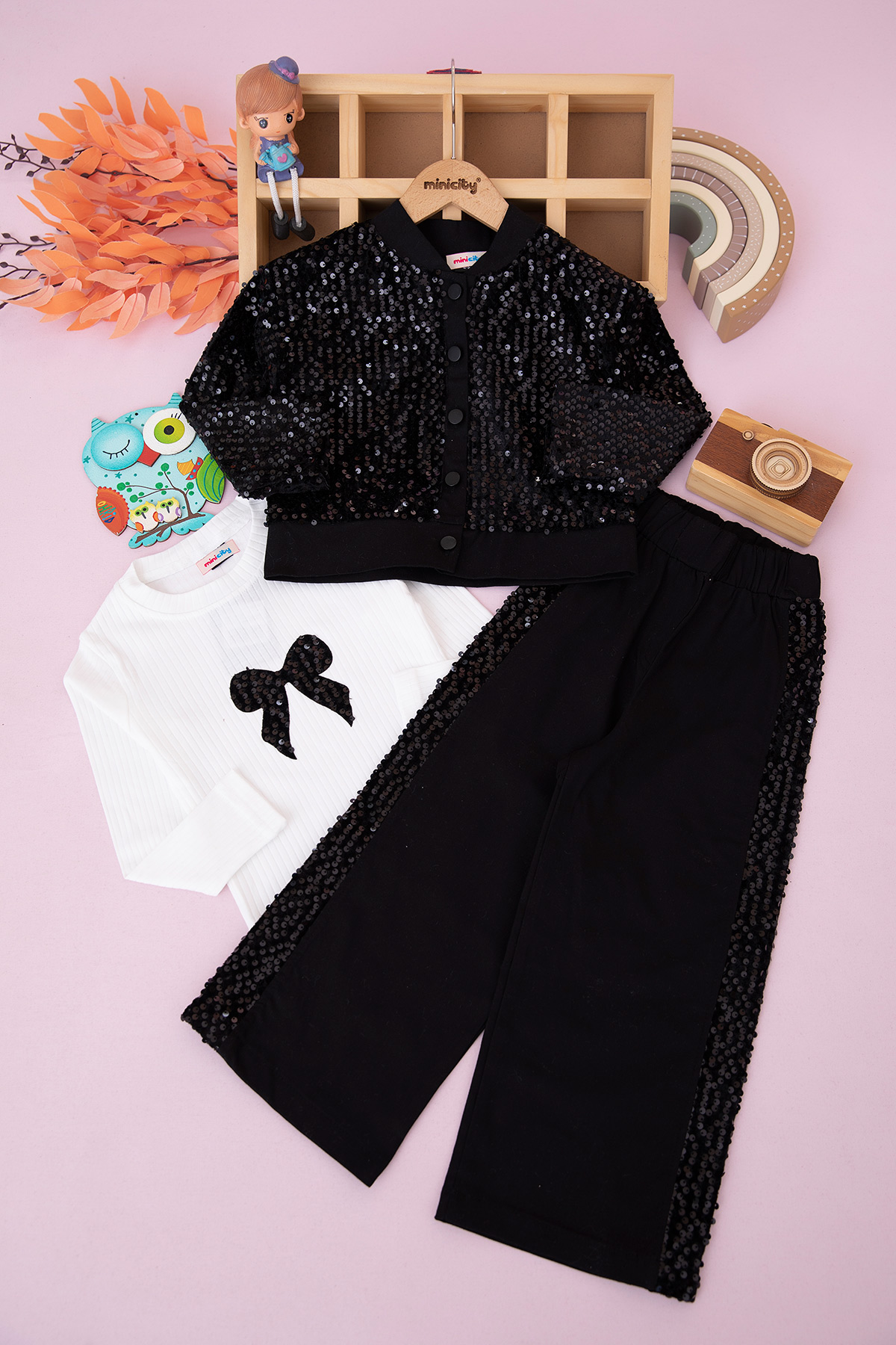 Kız Çocuk Gabardin Pullu Pantolon Takım - 2069 (4-10 Yaş)