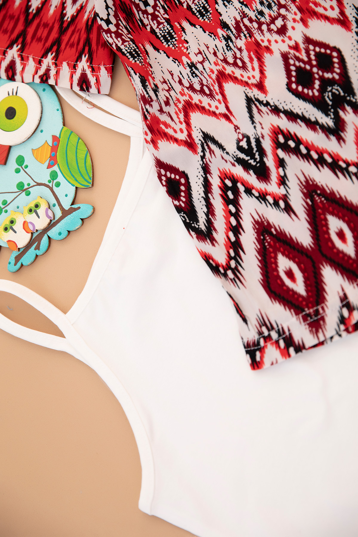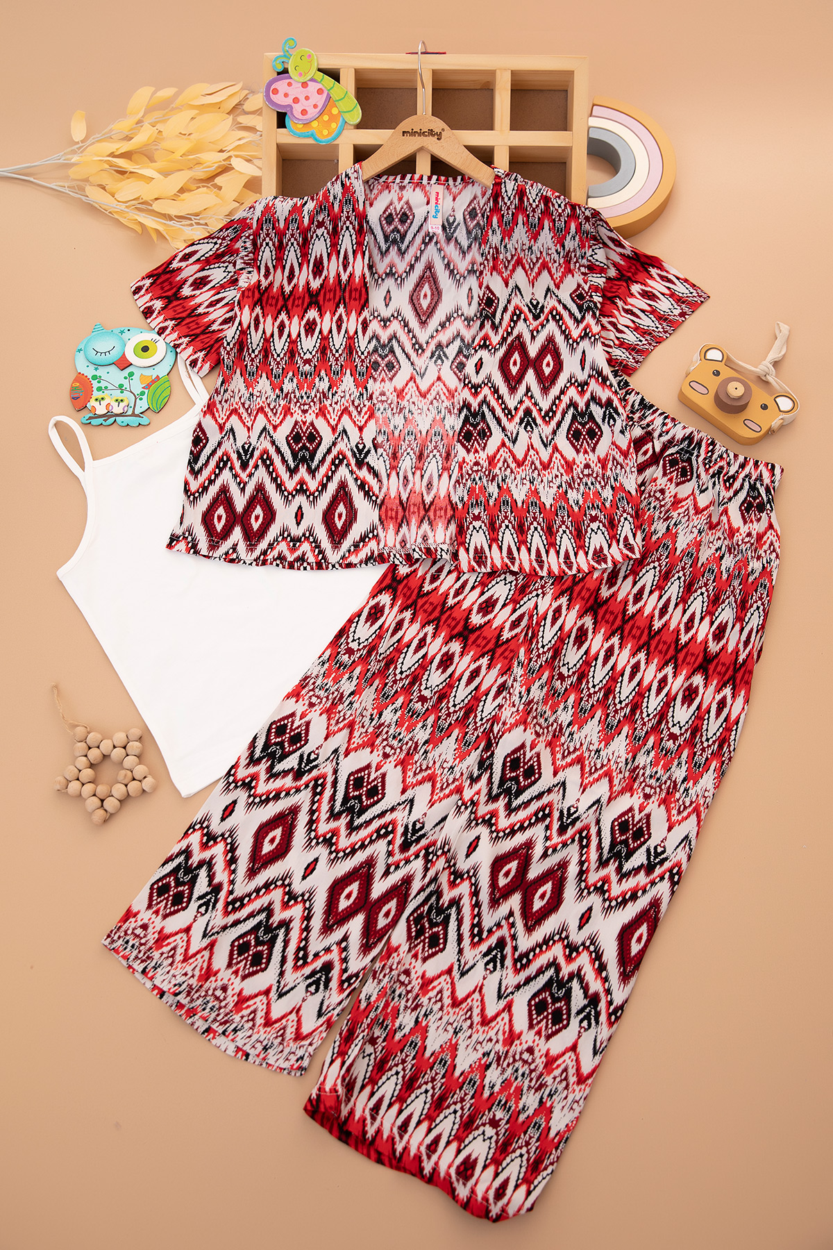 Kız Çocuk Garson Kimonolu Baskılı Üçlü Takım - (8-13 Yaş)