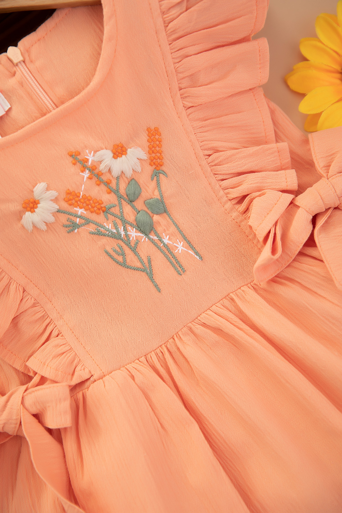 Kız Çocuk Gelincik Nakışlı Elbise - 1670 (3-6 Yaş)