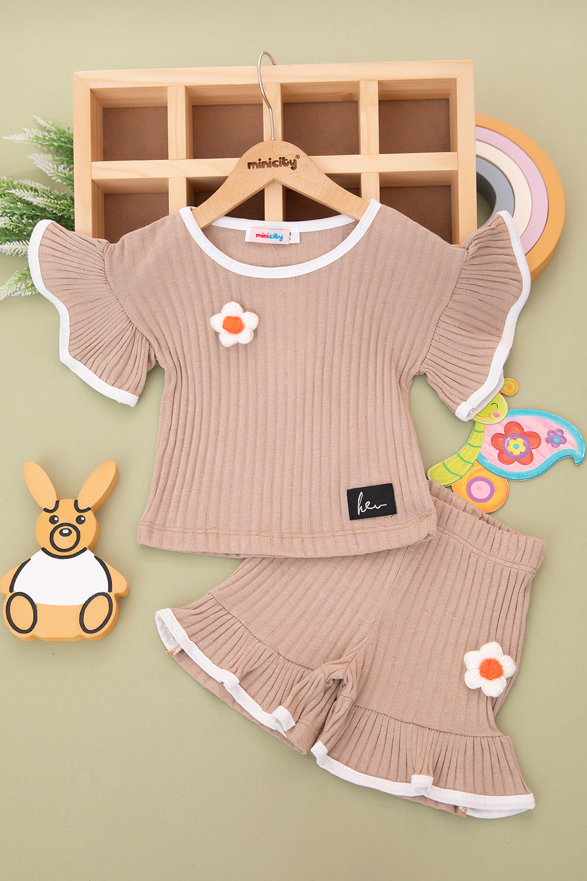 Kız Çocuk Geniş Fitilli Çiçekli Şortlu Takım - 2755-1 (3-12 Yaş)