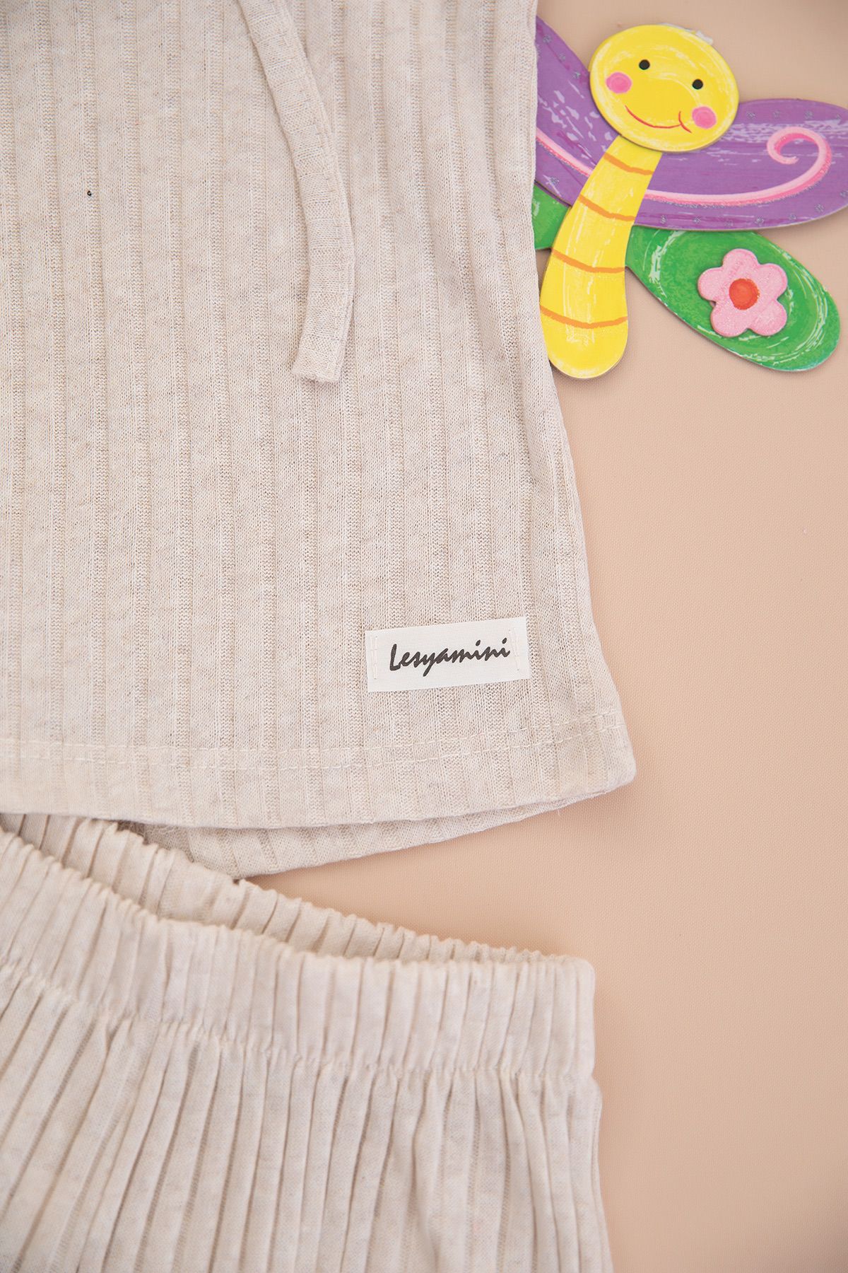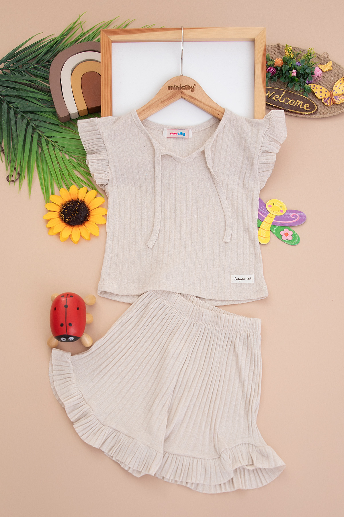 Kız Çocuk Geniş Fitilli Fırfırlı Şortlu Takım - 2760-1 (3-12 Yaş)