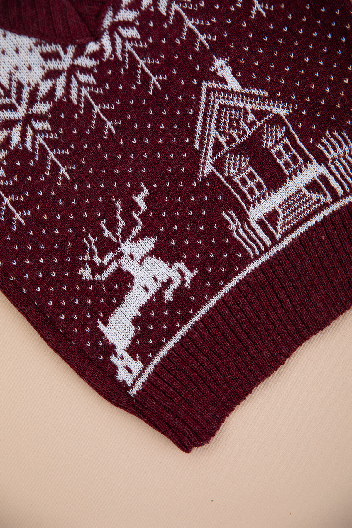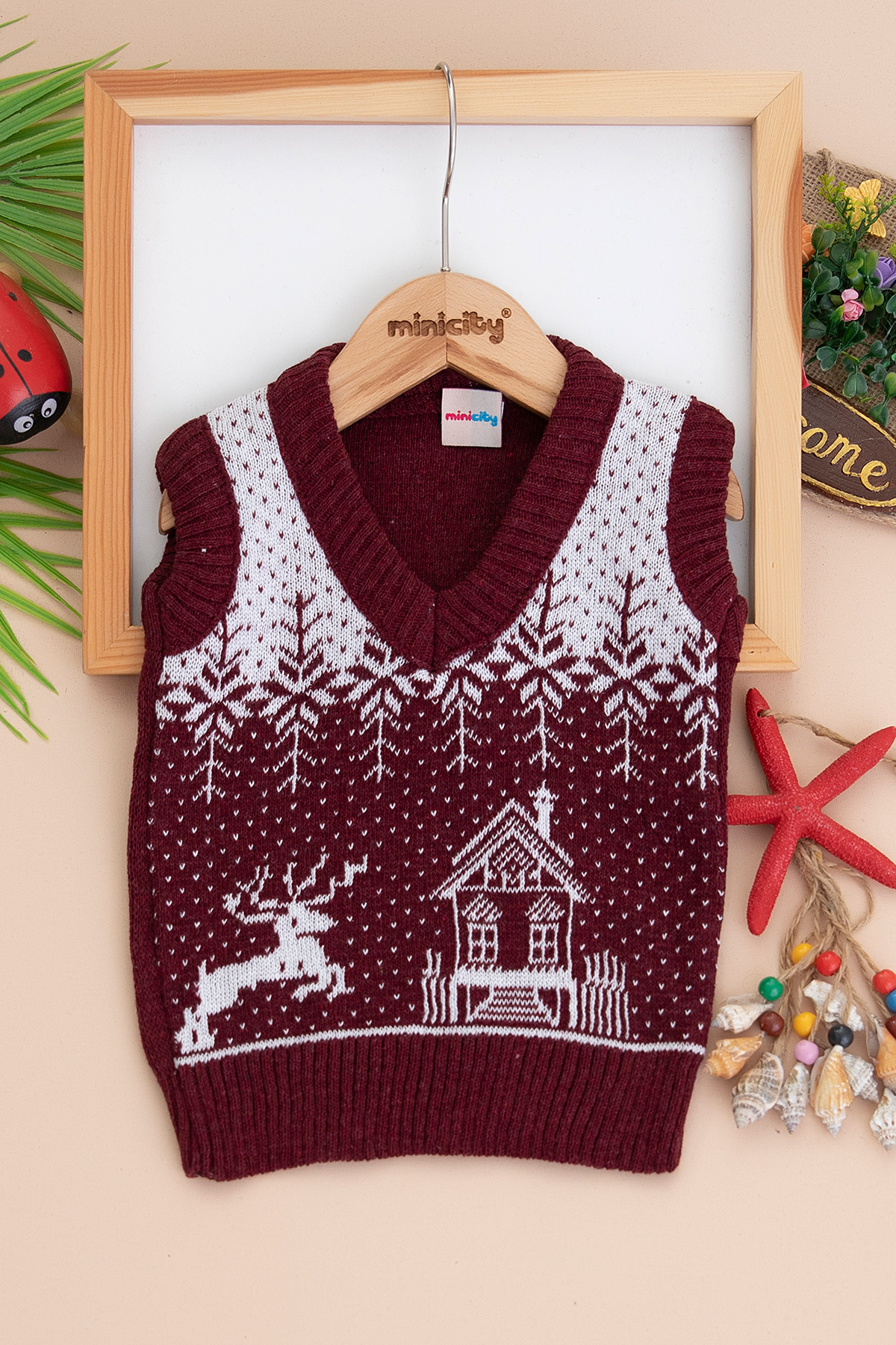 Kız Çocuk Geyik Ev Nakışlı Süveter (1-3 Yaş)