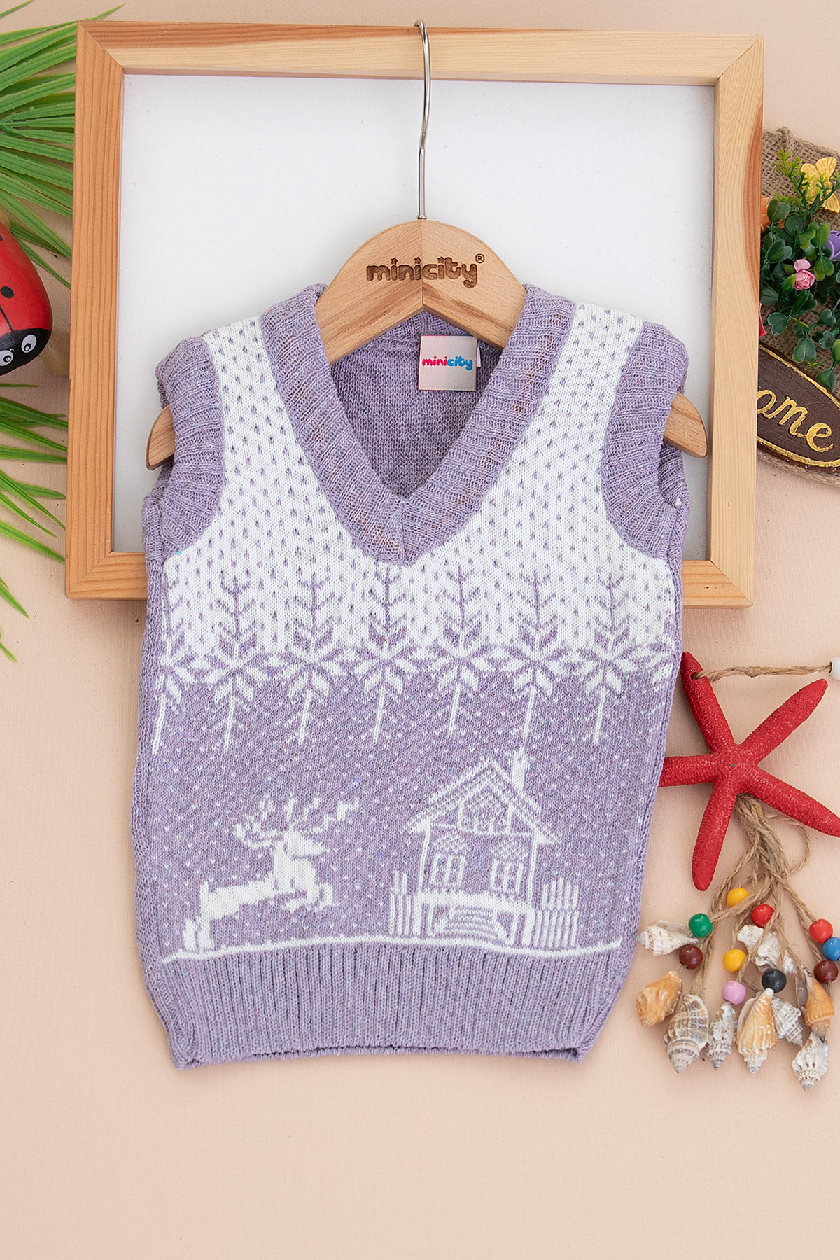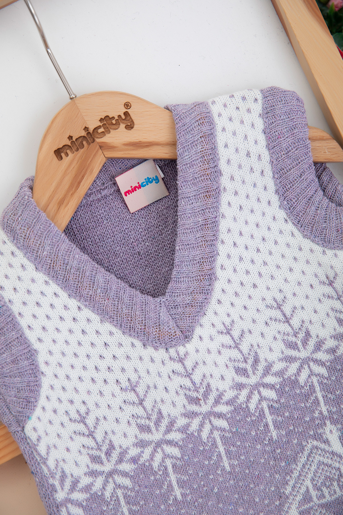 Kız Çocuk Geyik Ev Nakışlı Süveter (1-3 Yaş)