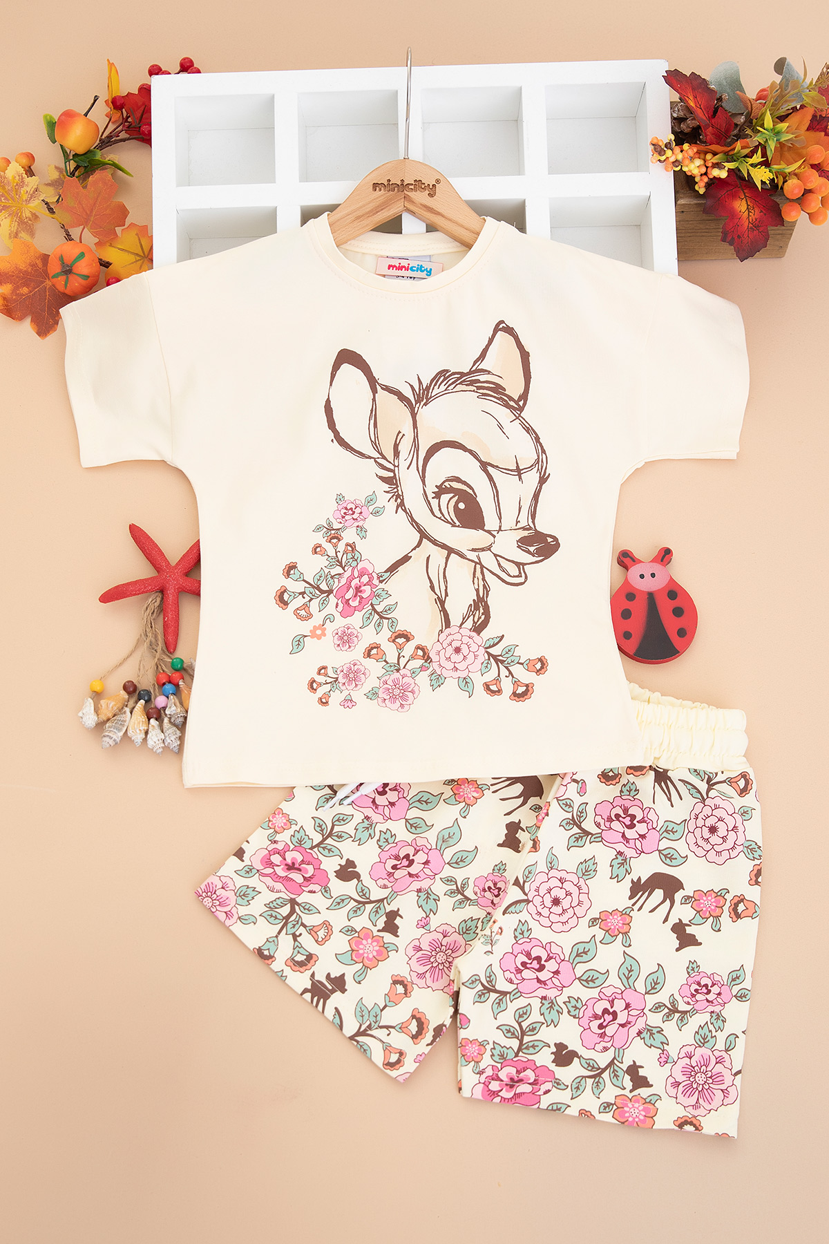 Kız Çocuk Geyikli Şortlu Takım - 6632 (3-10 Yaş)