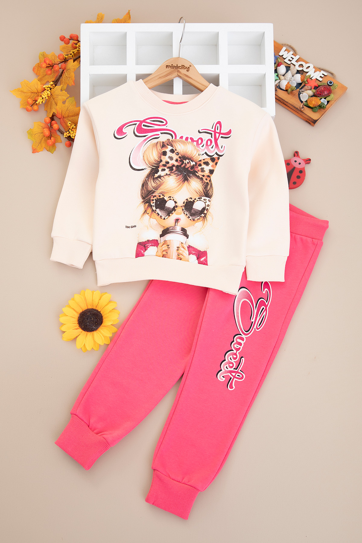 Kız Çocuk Girl Leopar Şardonlu Takım - 8254 (3-10 Yaş)