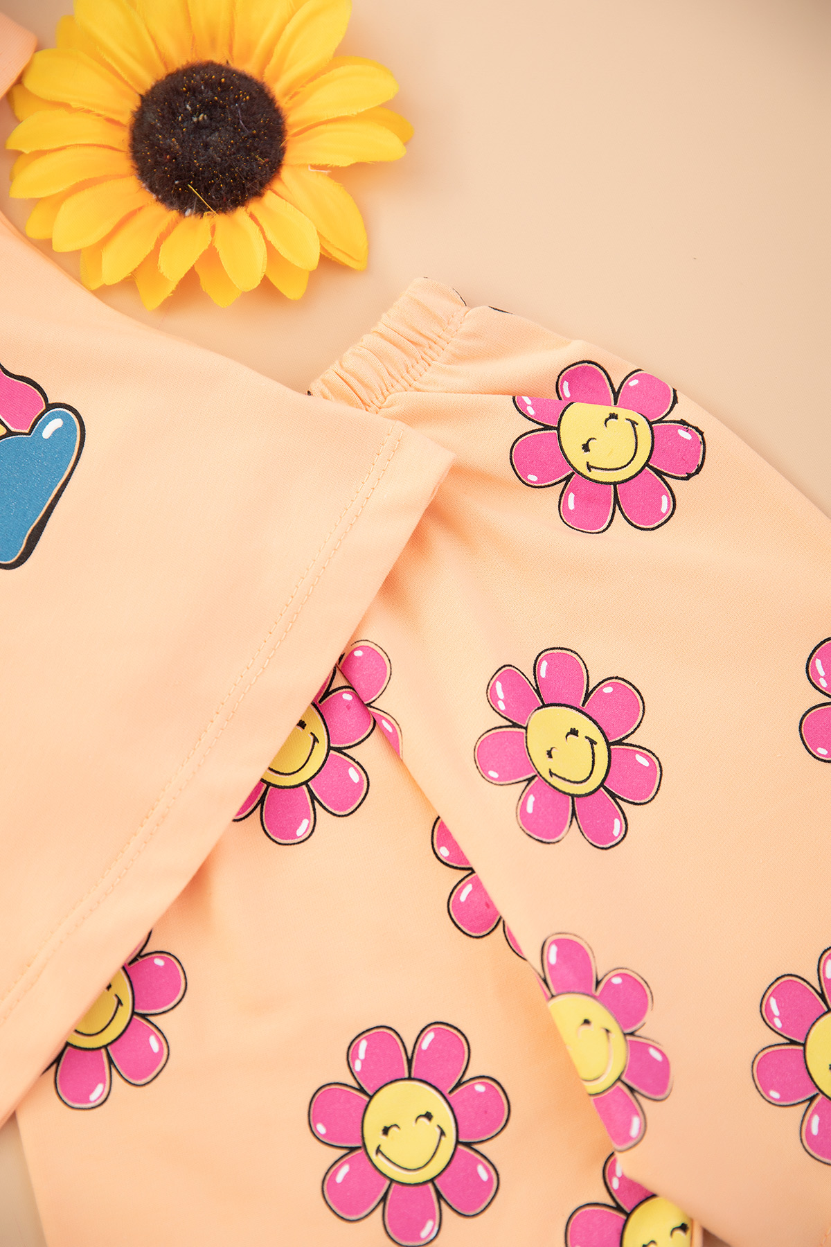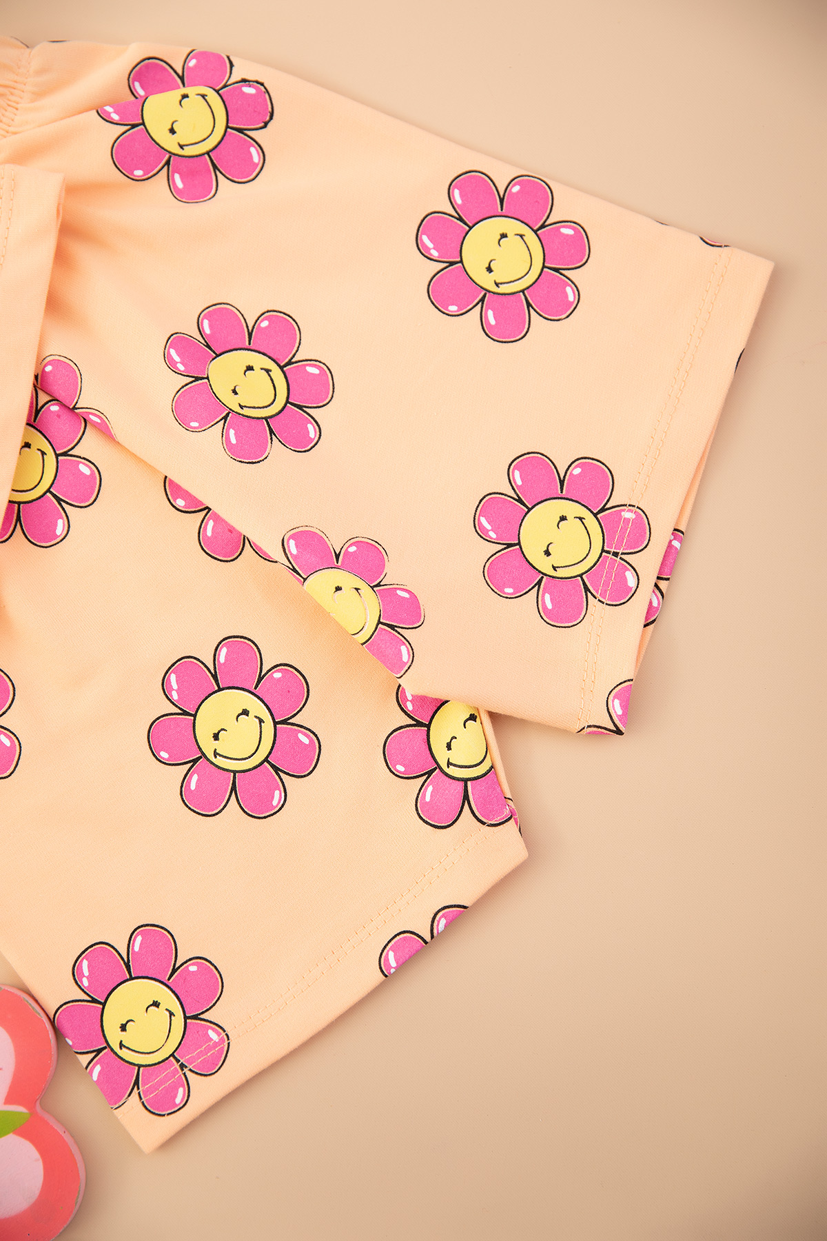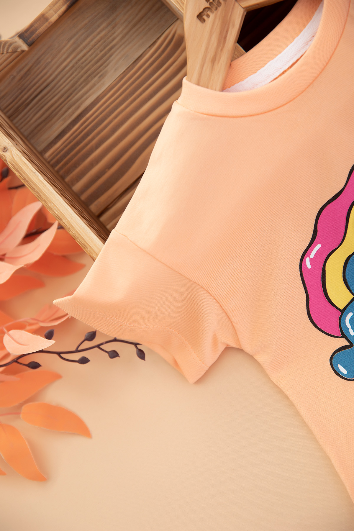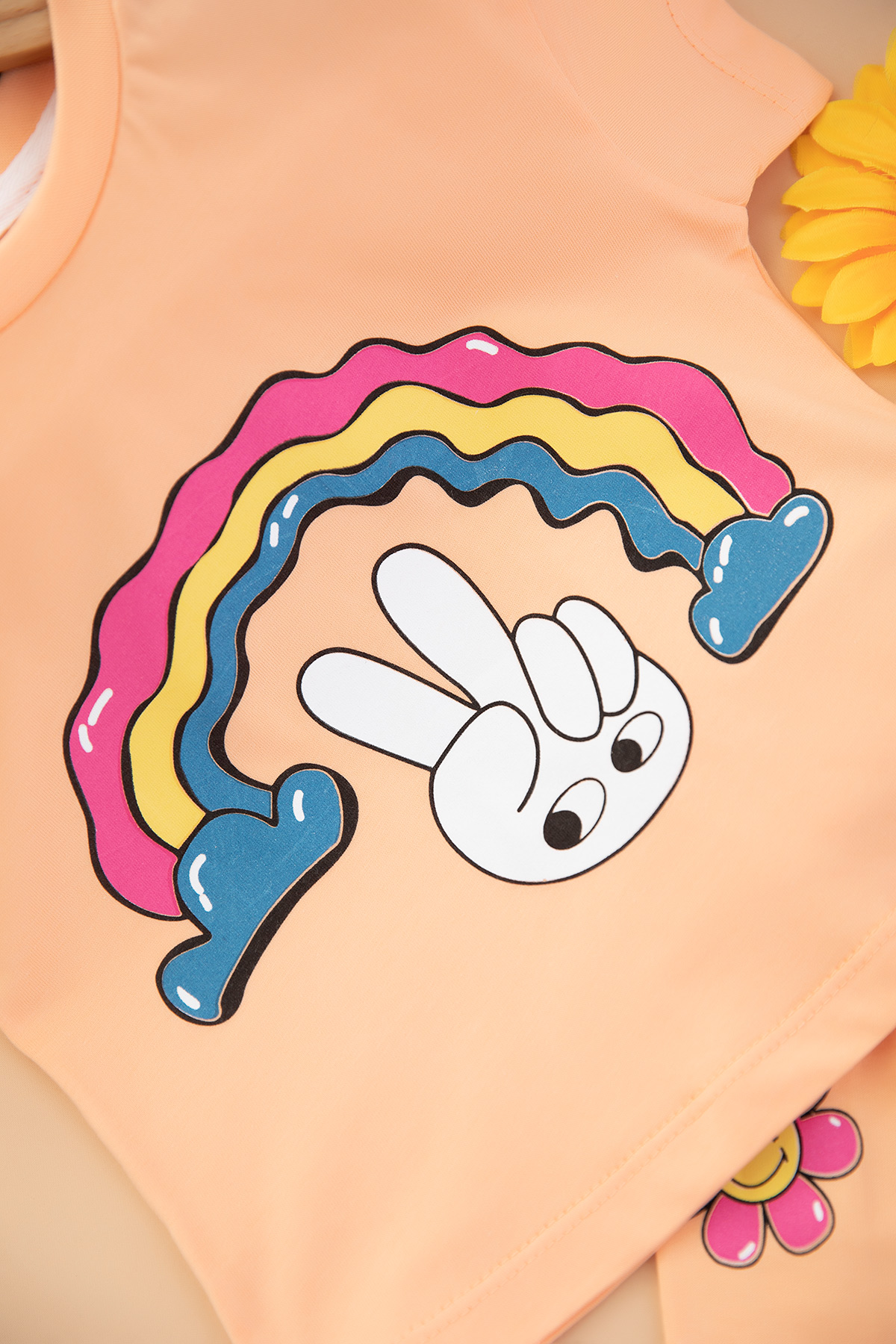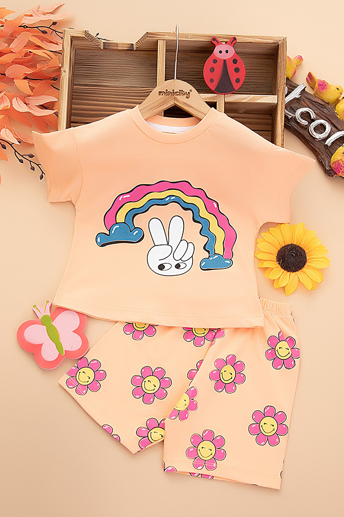Kız Çocuk Gökkuşağı Baskılı Şortlu Takım - 4856 (1-4 Yaş)