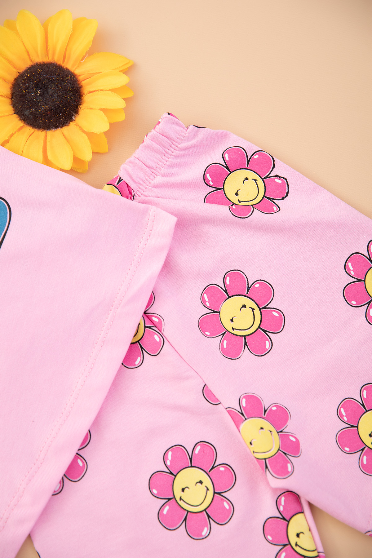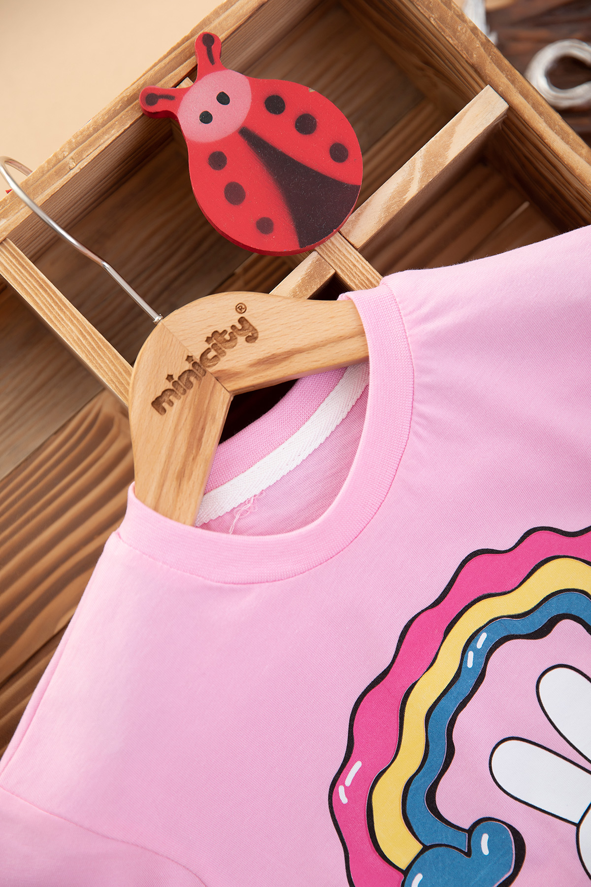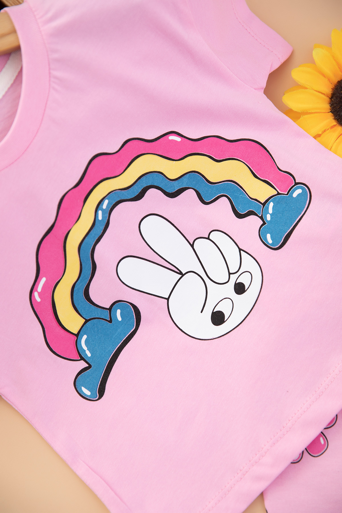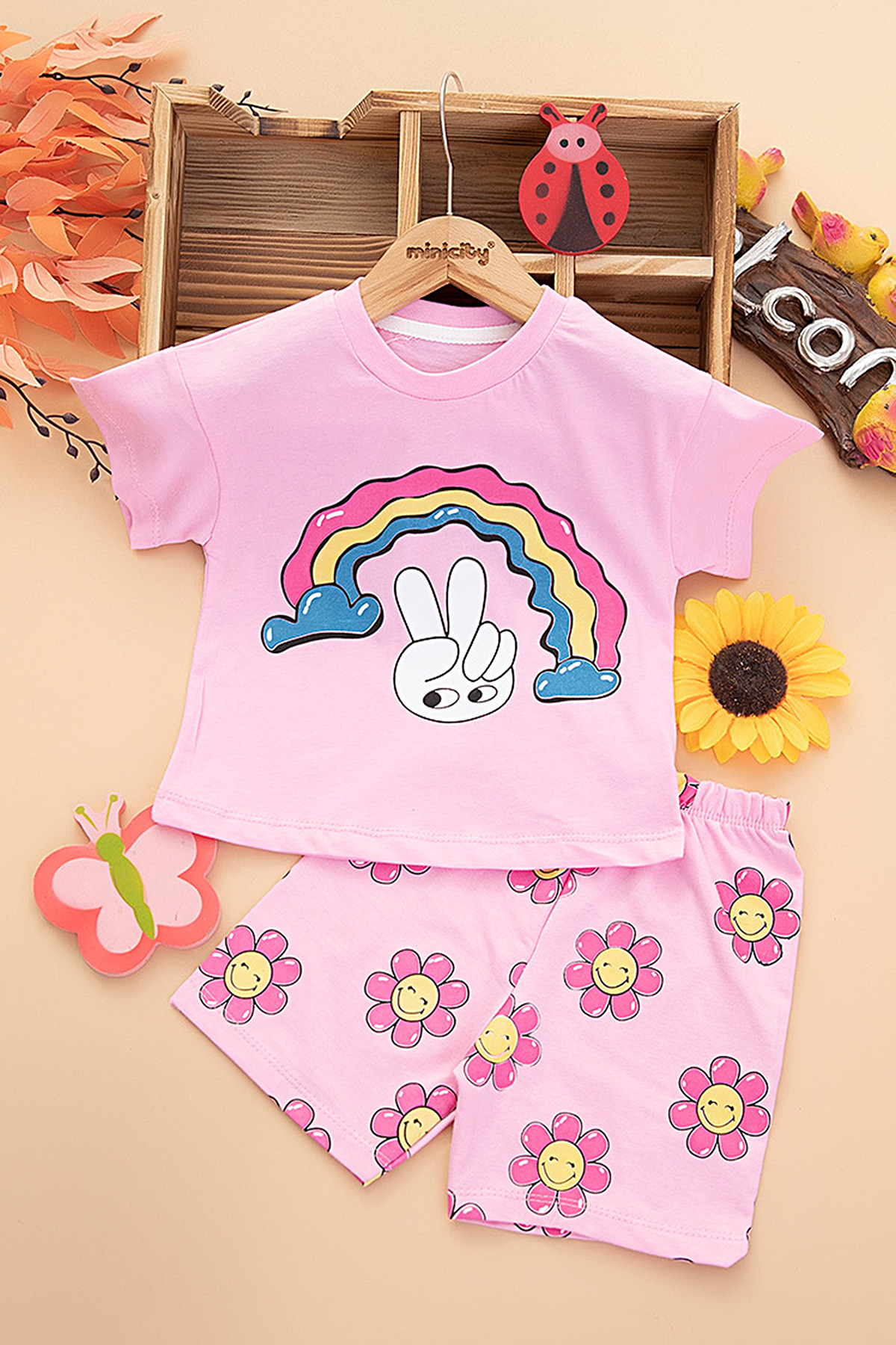 Kız Çocuk Gökkuşağı Baskılı Şortlu Takım - 4856 (1-4 Yaş)