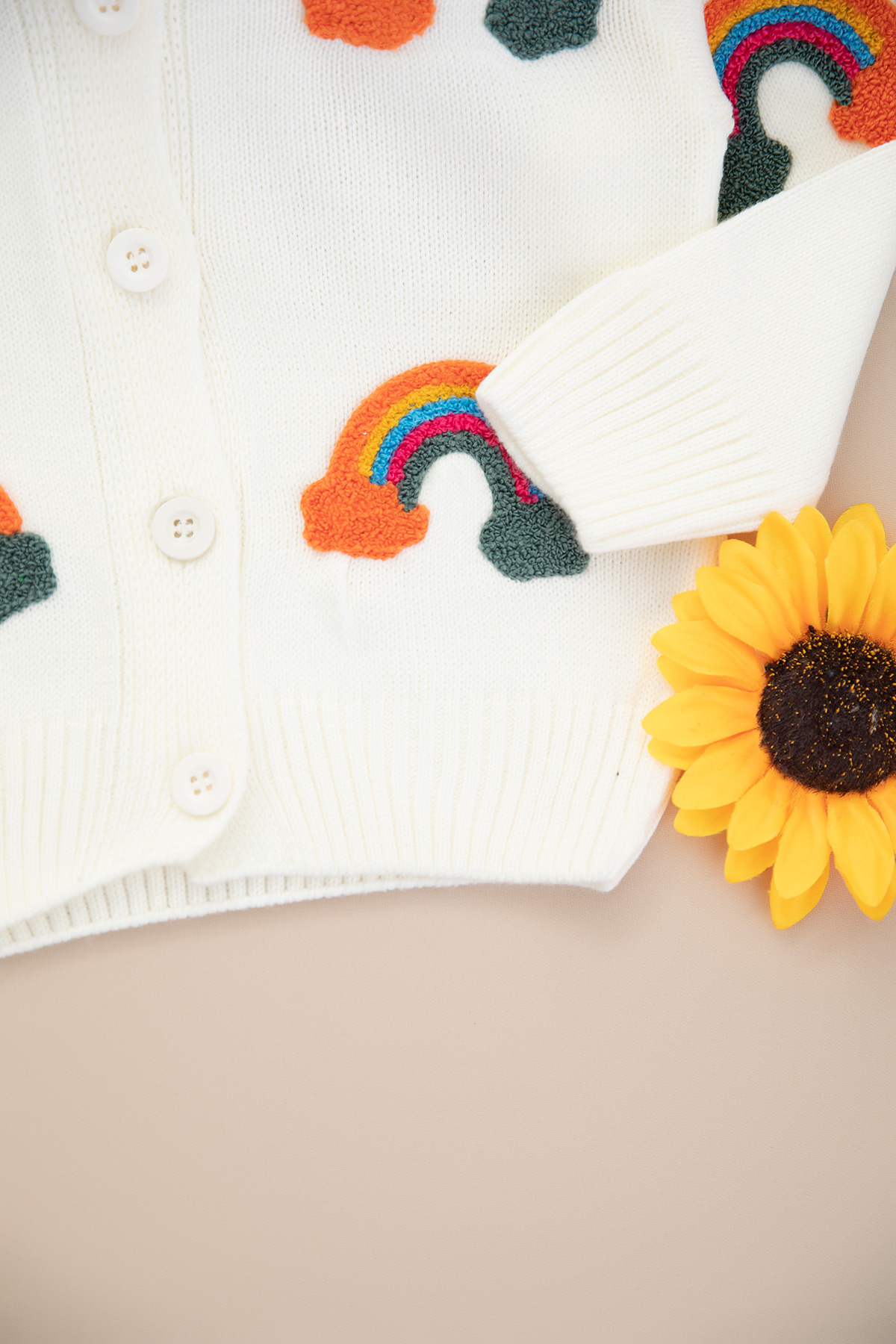 Kız Çocuk Gökkuşağı Nakışlı Düğmeli Triko Hırka (2-8 Yaş)
