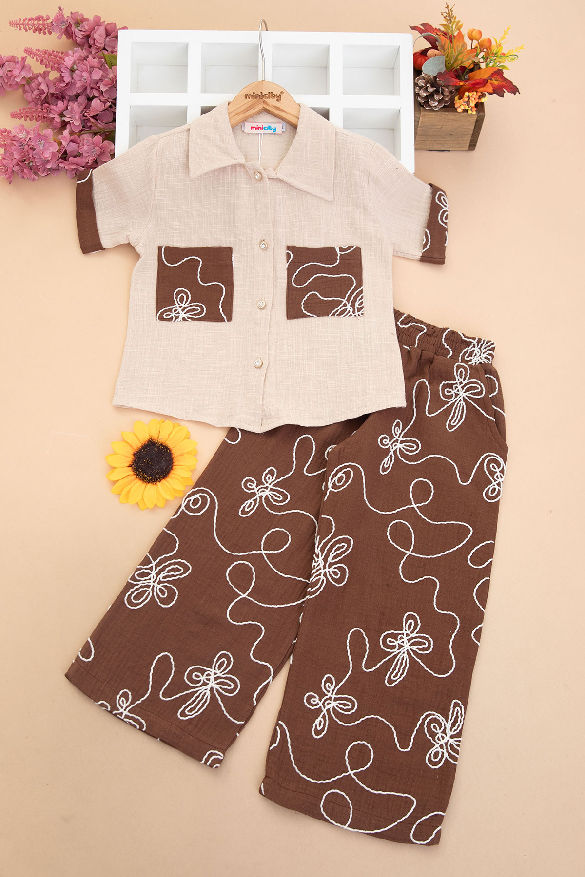 Kız Çocuk Gömleği Çizgili Çiçekli Takım - 386 (5-8 Yaş)