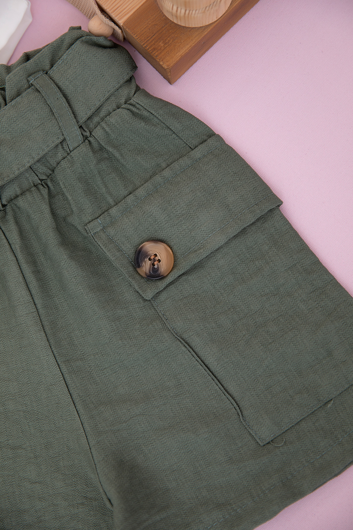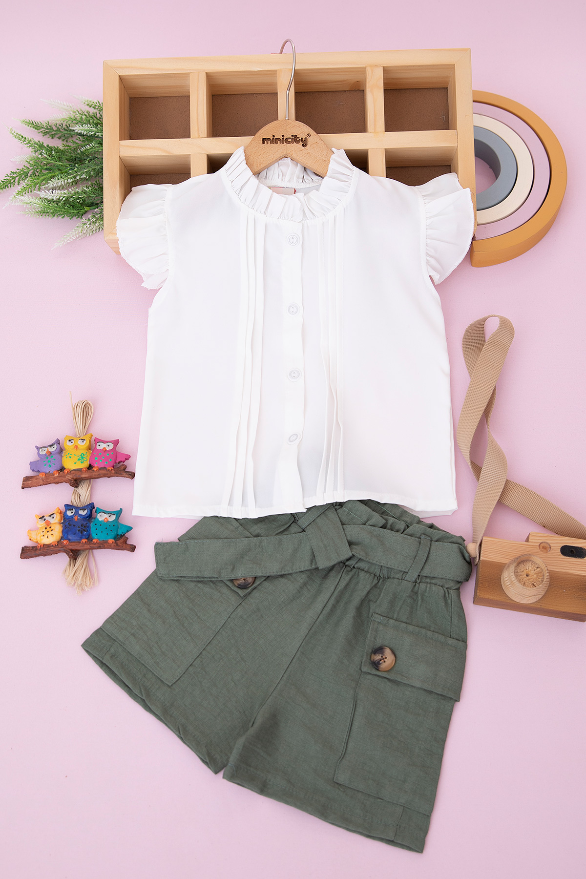 Kız Çocuk Gömlek Keten Şort Takım (3-8 Yaş)