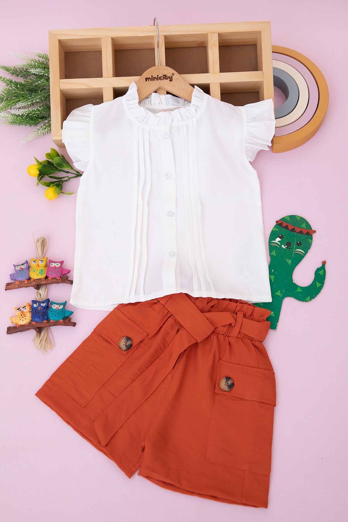Kız Çocuk Gömlek Keten Şort Takım (3-8 Yaş)