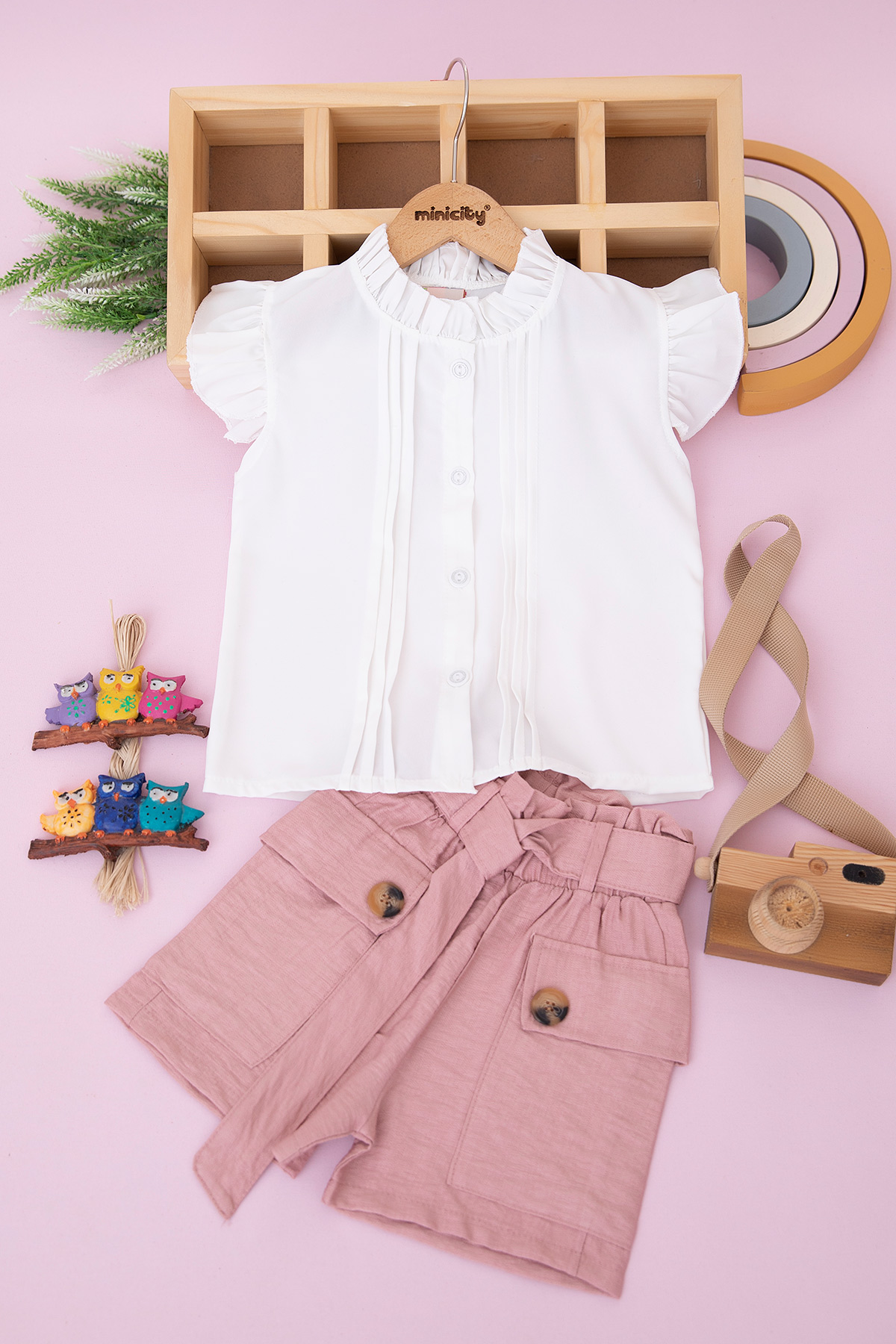 Kız Çocuk Gömlek Keten Şort Takım (3-8 Yaş)