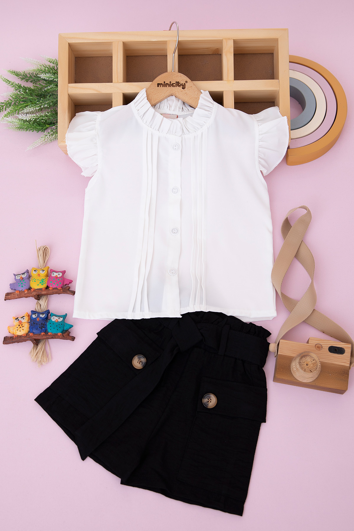 Kız Çocuk Gömlek Keten Şort Takım (3-8 Yaş)