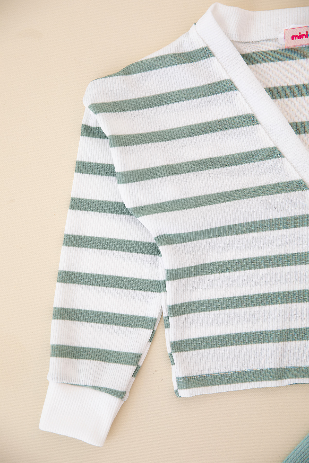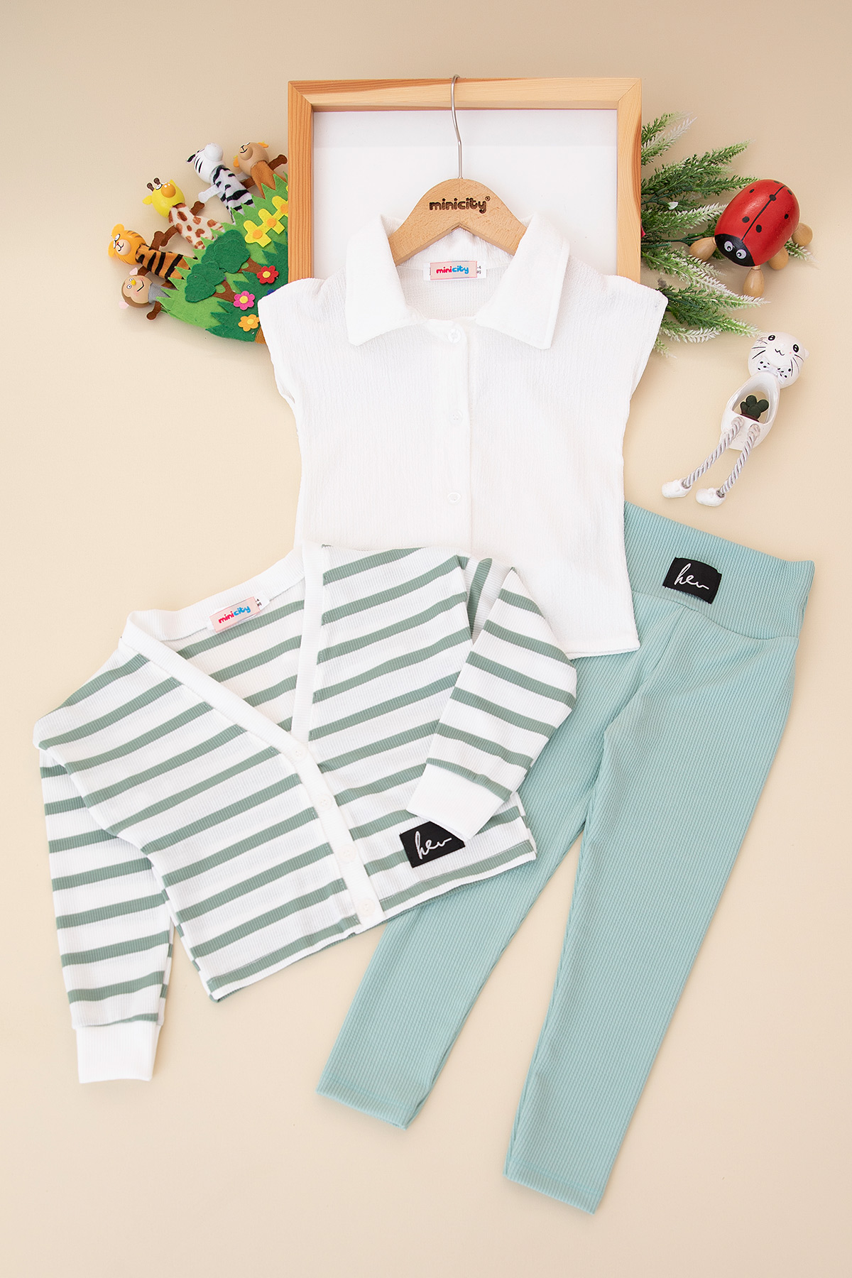 Kız Çocuk Gömlekli Çizgili Üçlü Takım - 2705-01 (3-12 Yaş)