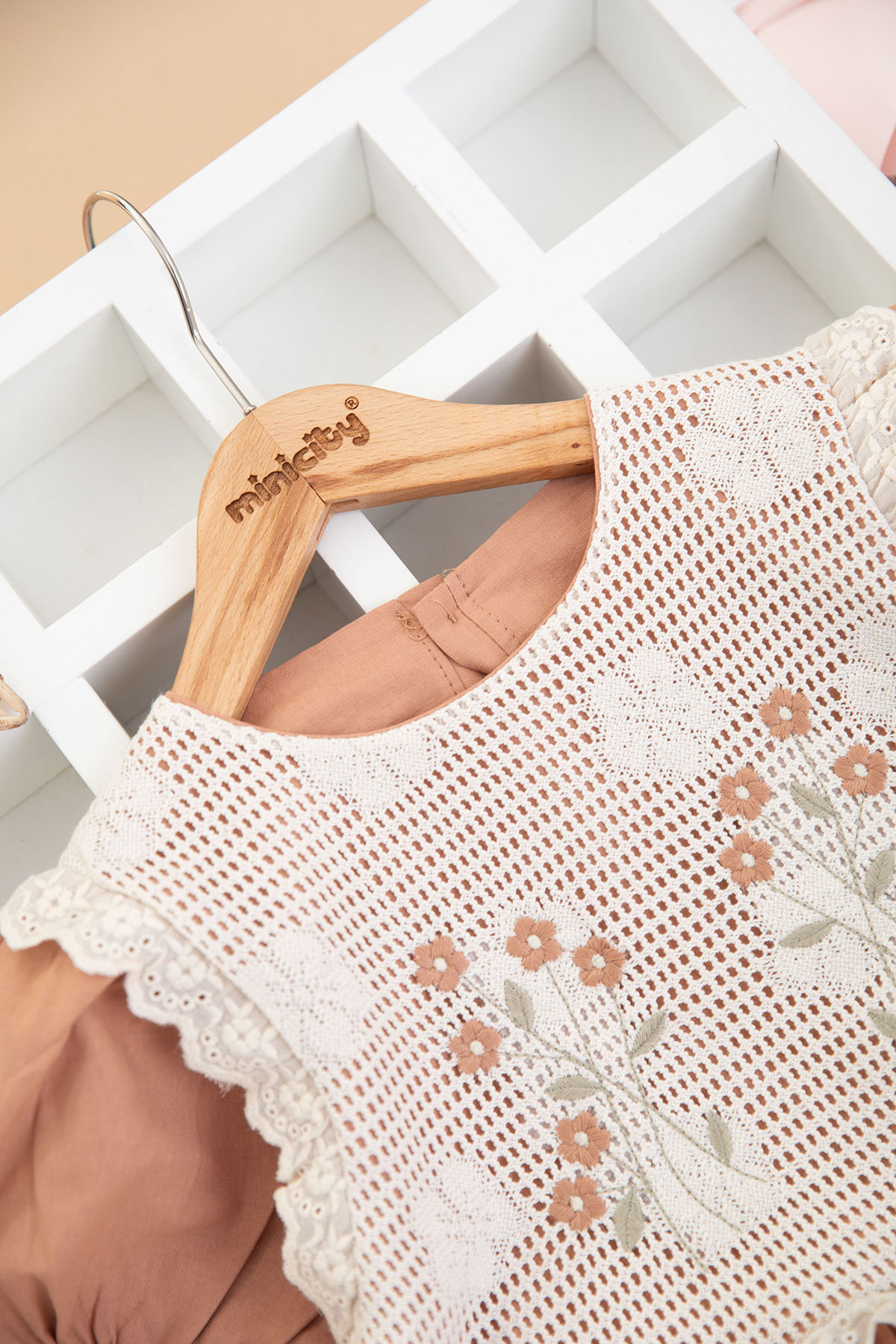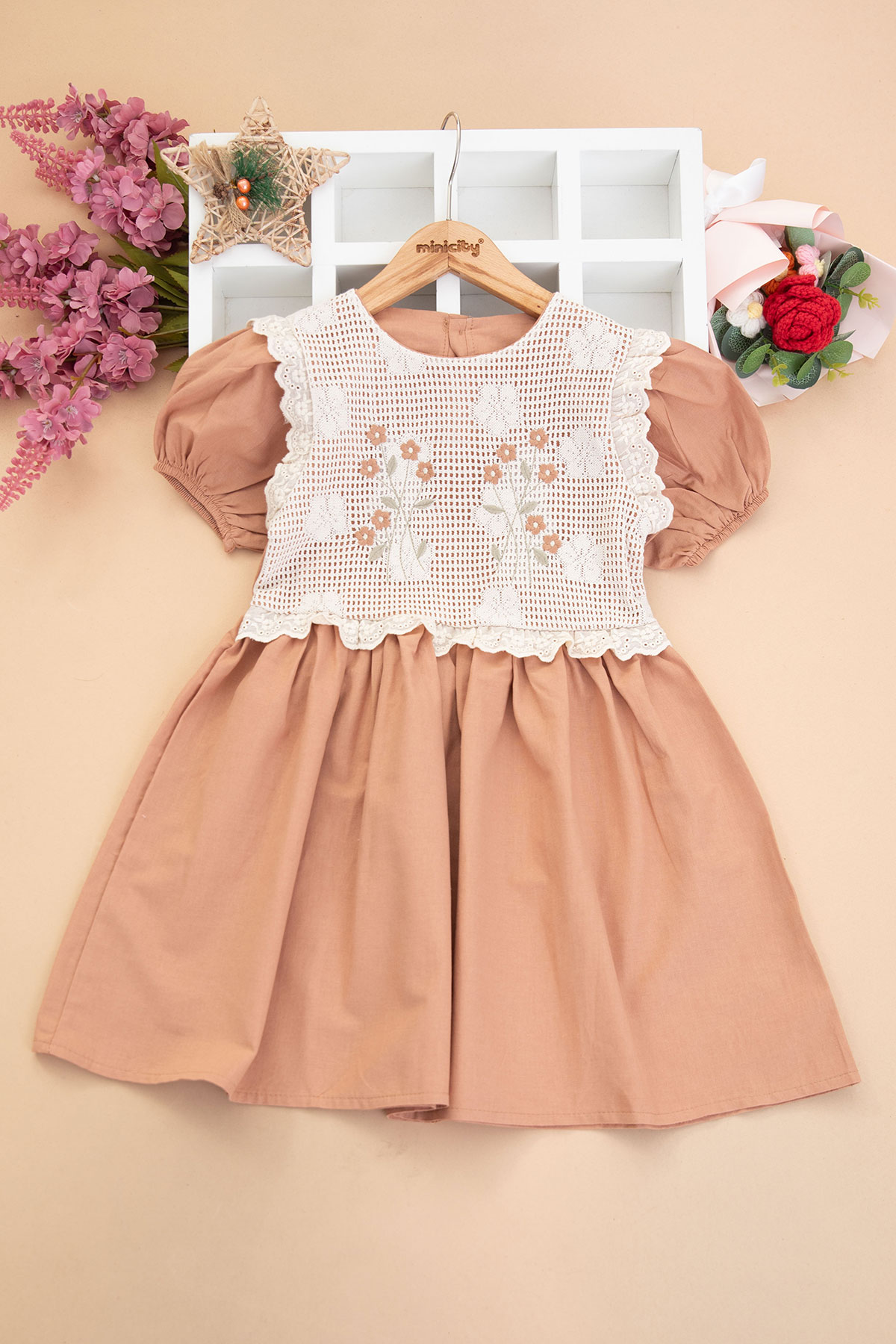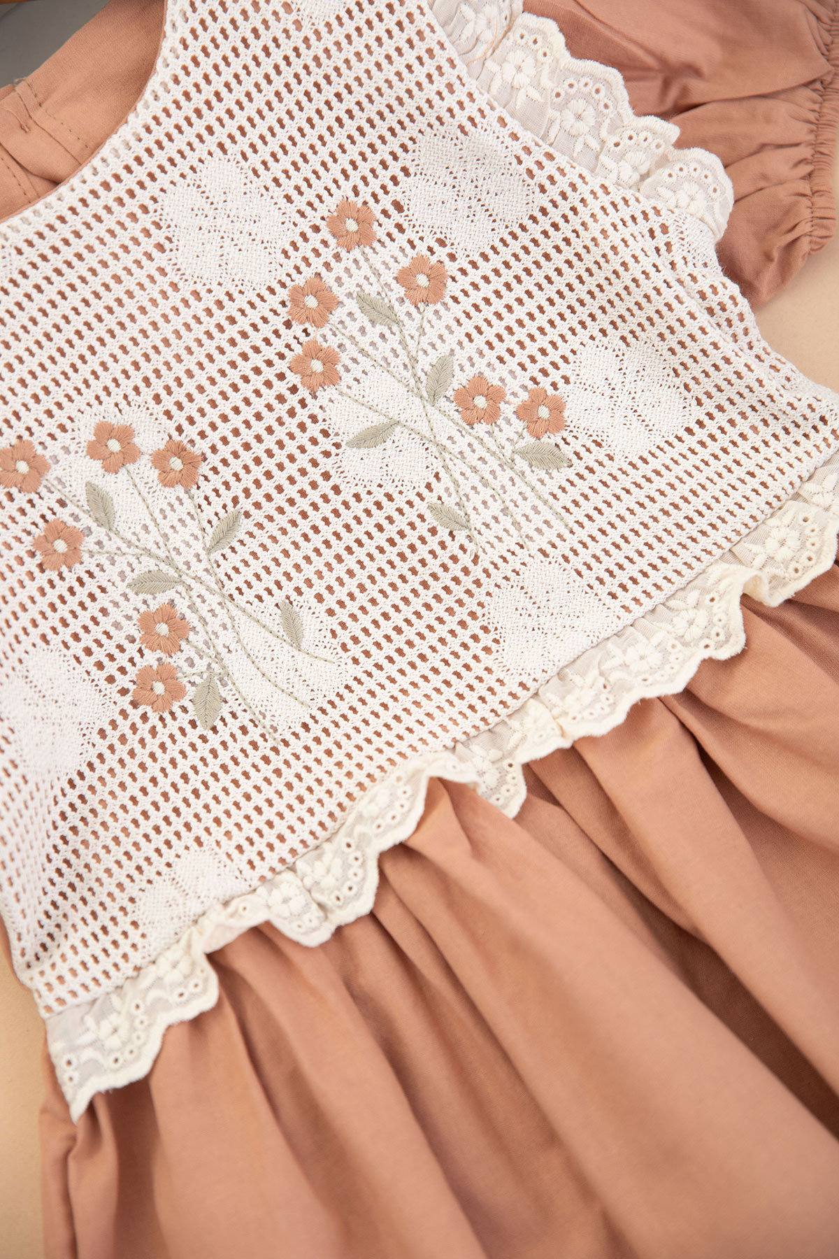 Kız Çocuk Gövde Brodeli Çiçekli Elbise - 3088 (6-10 Yaş)