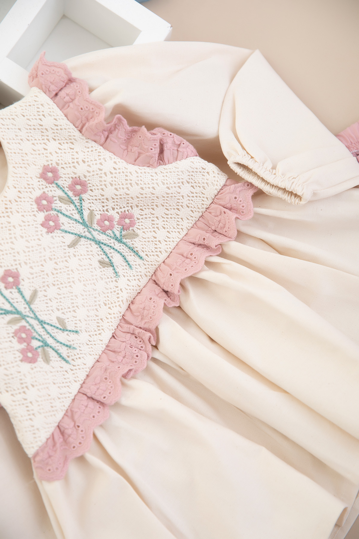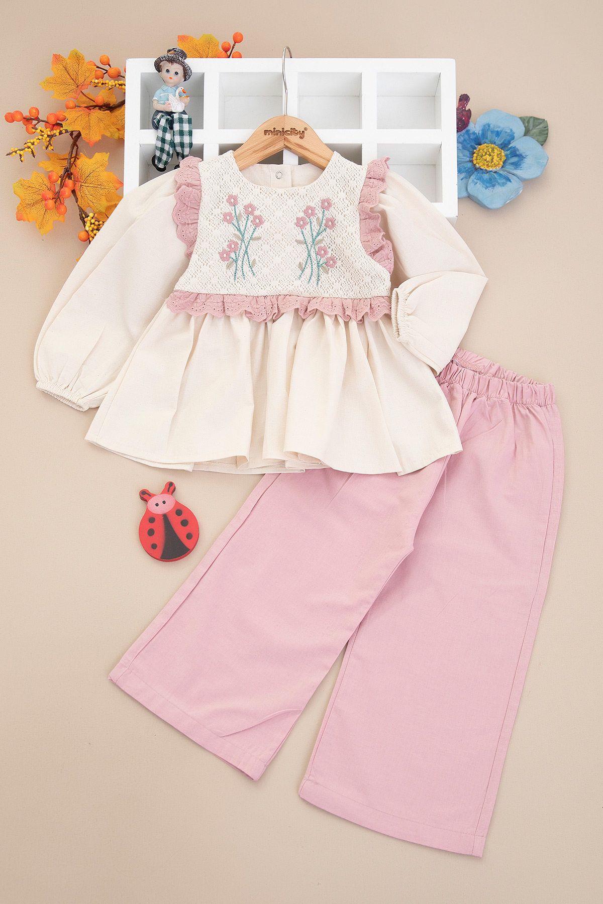 Kız Çocuk Gövde Brodeli Çiçekli Takım - 3005 (2-6 Yaş)
