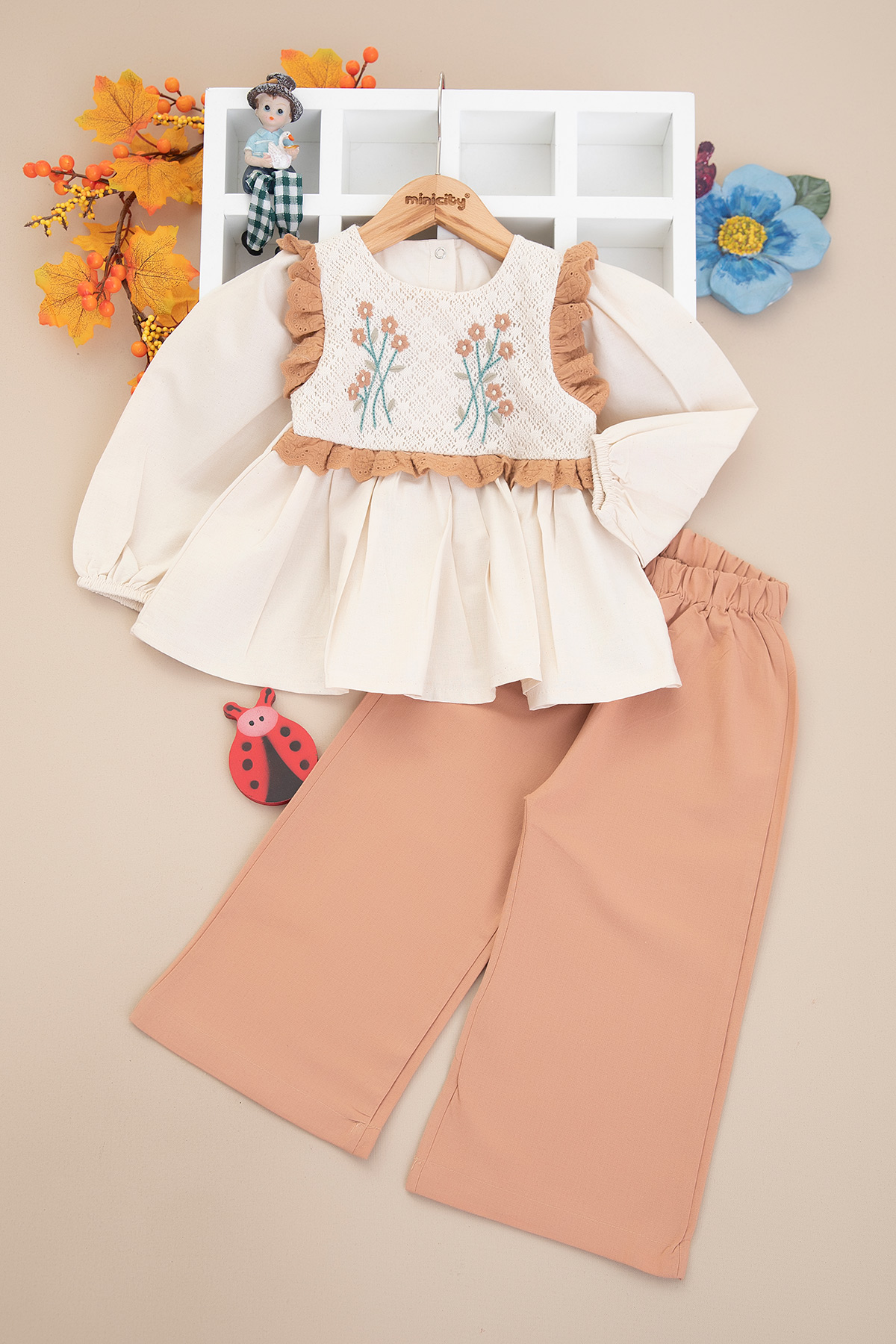 Kız Çocuk Gövde Brodeli Çiçekli Takım - 3005 (2-6 Yaş)