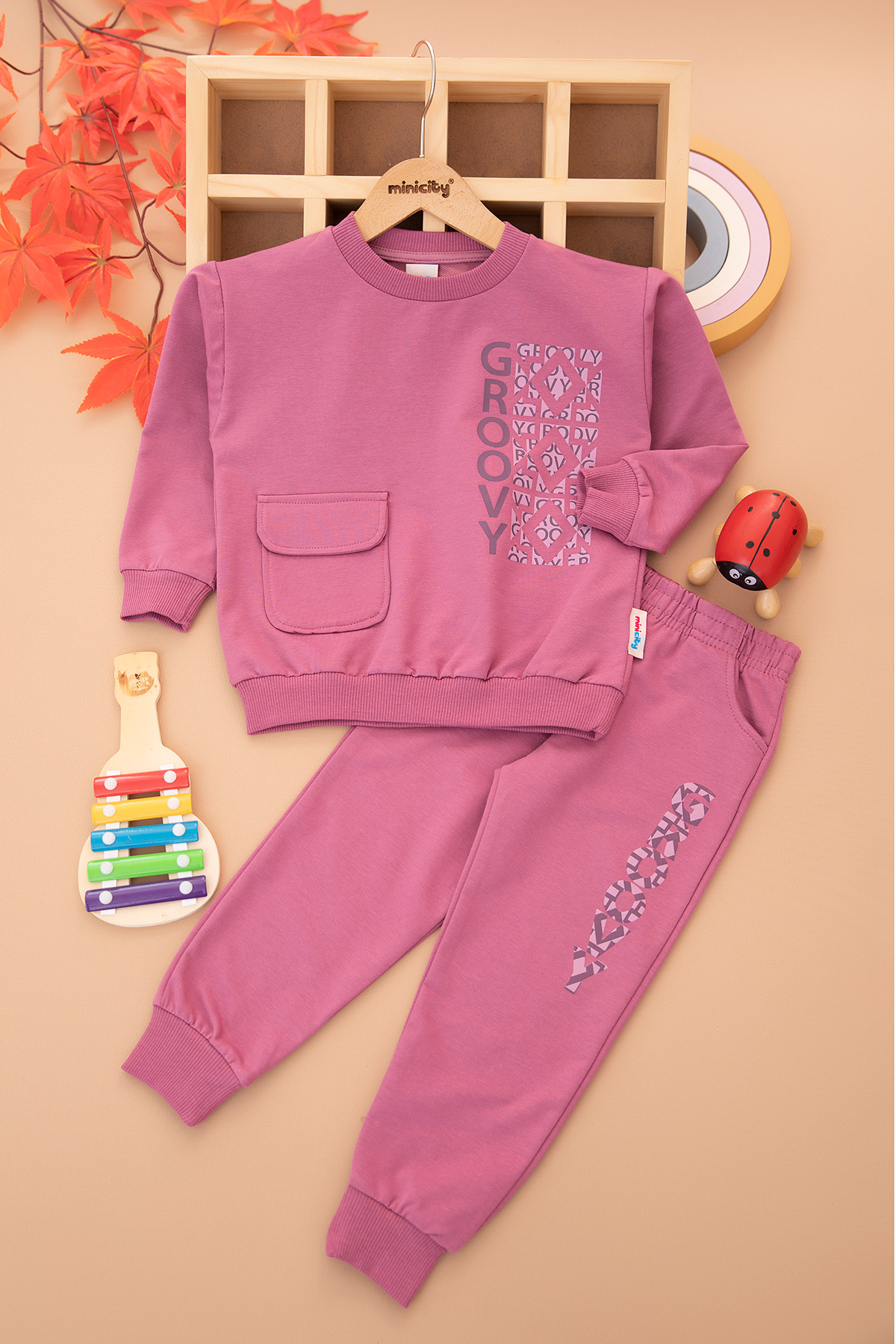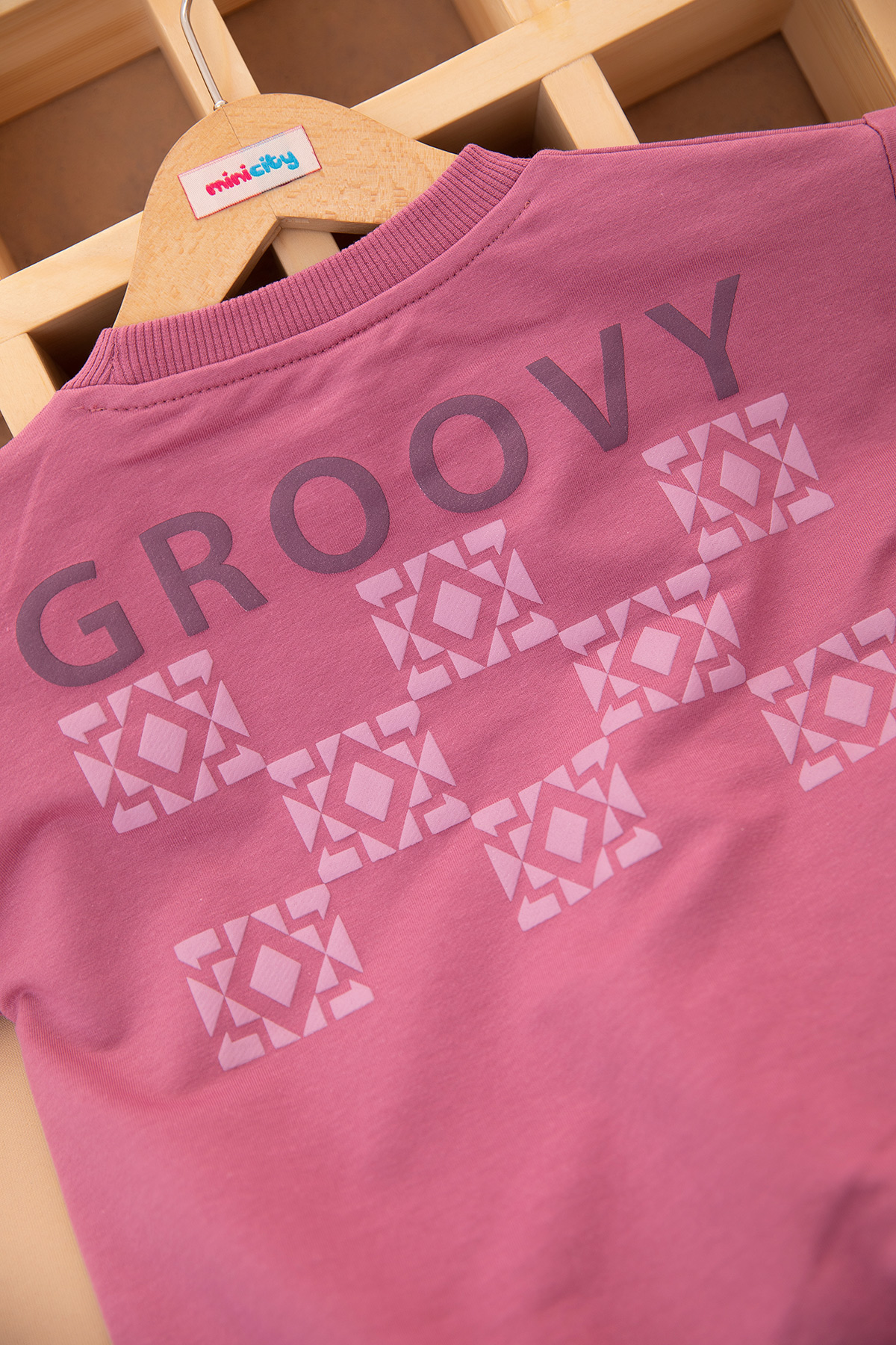 Kız Çocuk Groovy Kare Baskılı Takım - 24638 (7-10 Yaş)