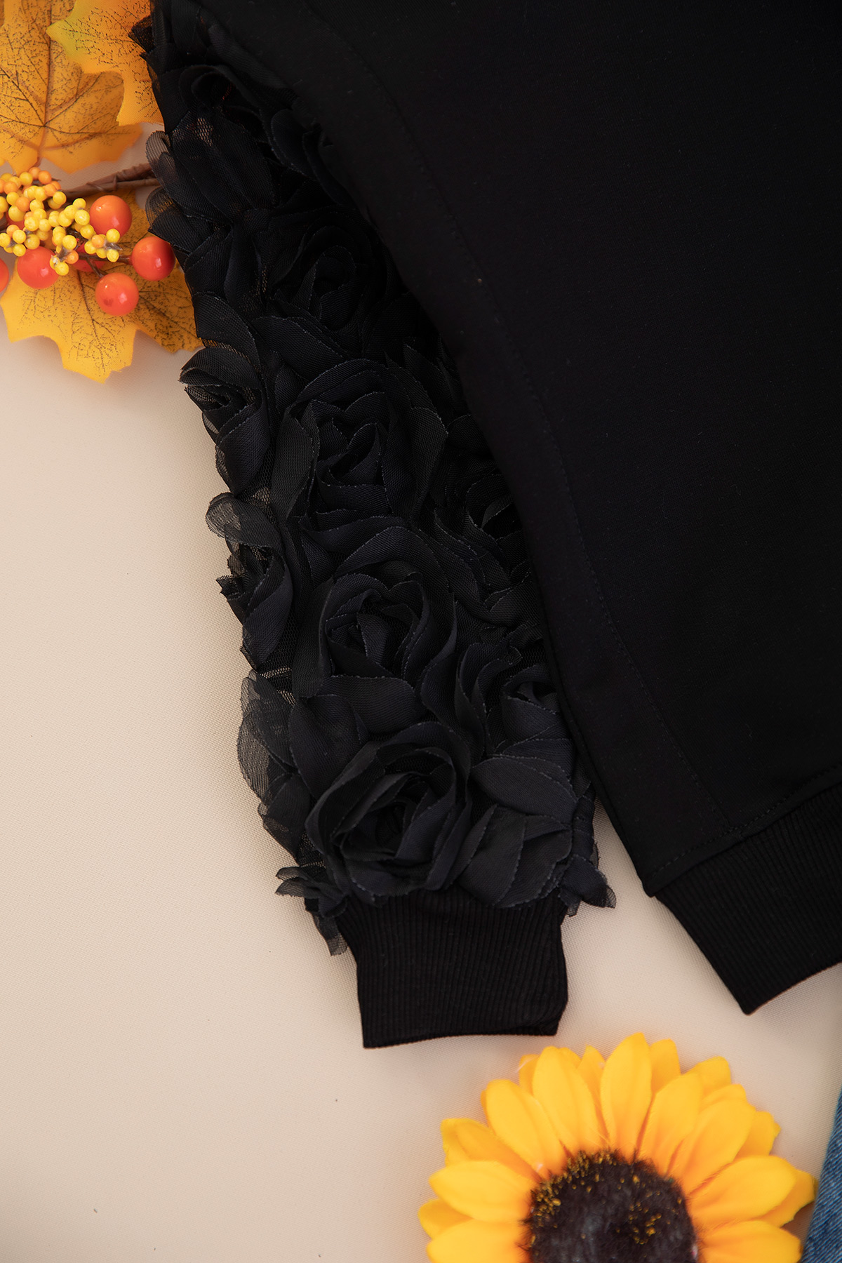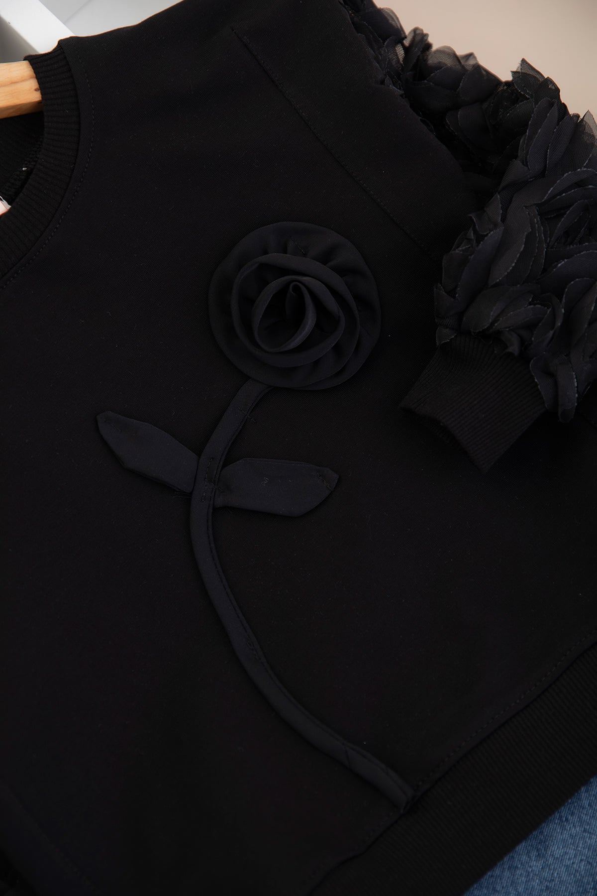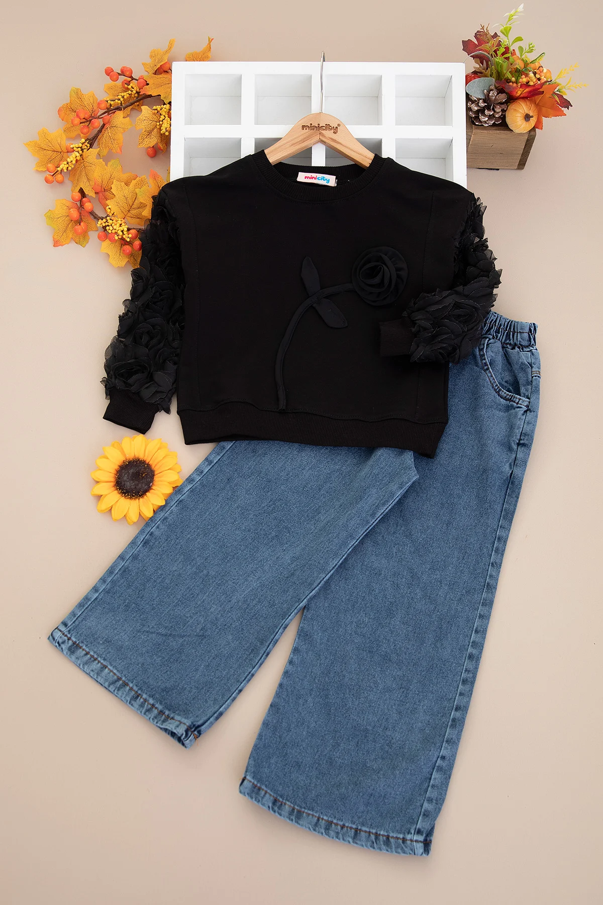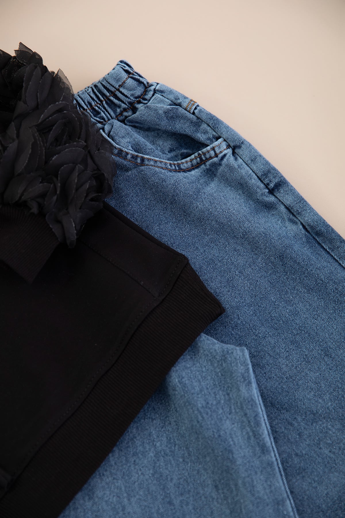 Kız Çocuk Gül Aksesuarlı Kot Pantolon Takım - 2647 (6-10 Yaş)