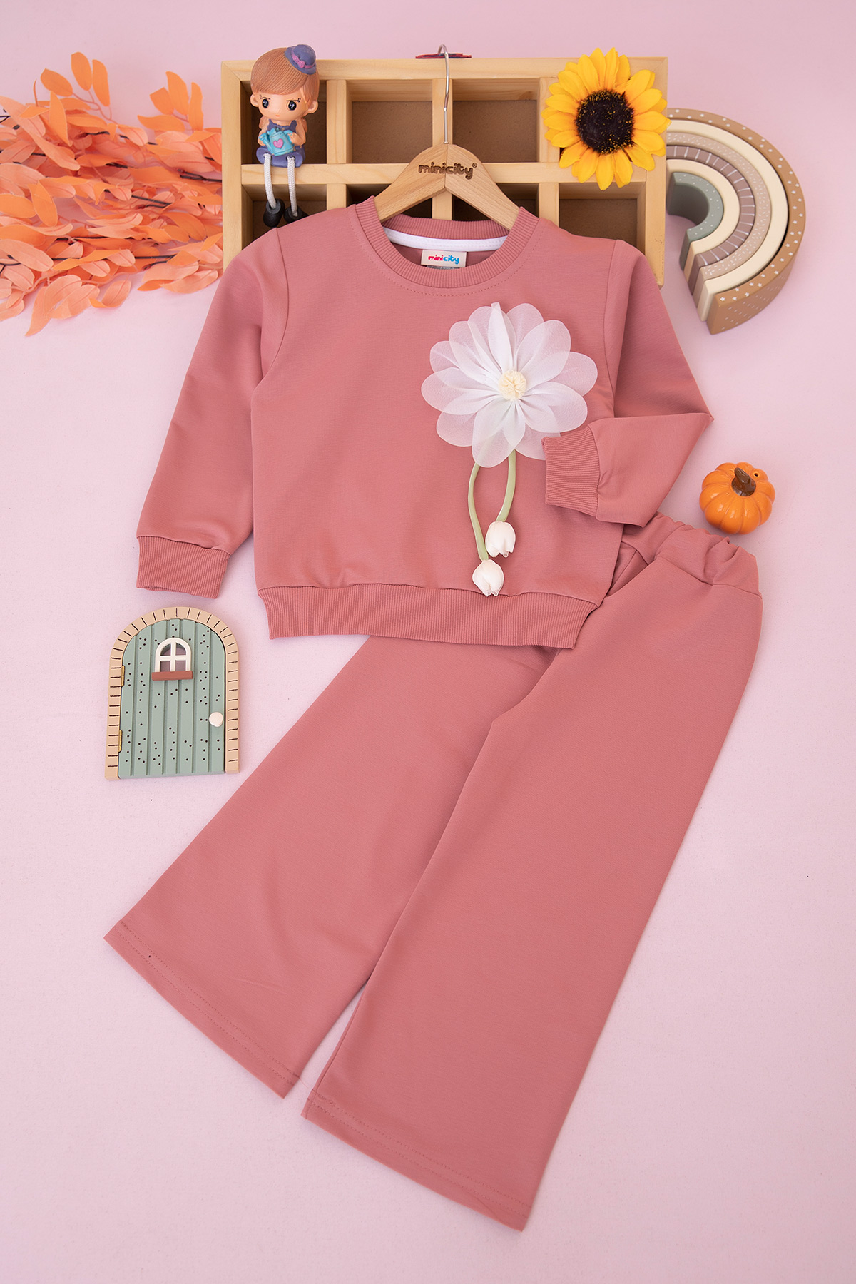 Kız Çocuk Gül Aksesuarlı Mevsimlik Takım (3-10 Yaş)