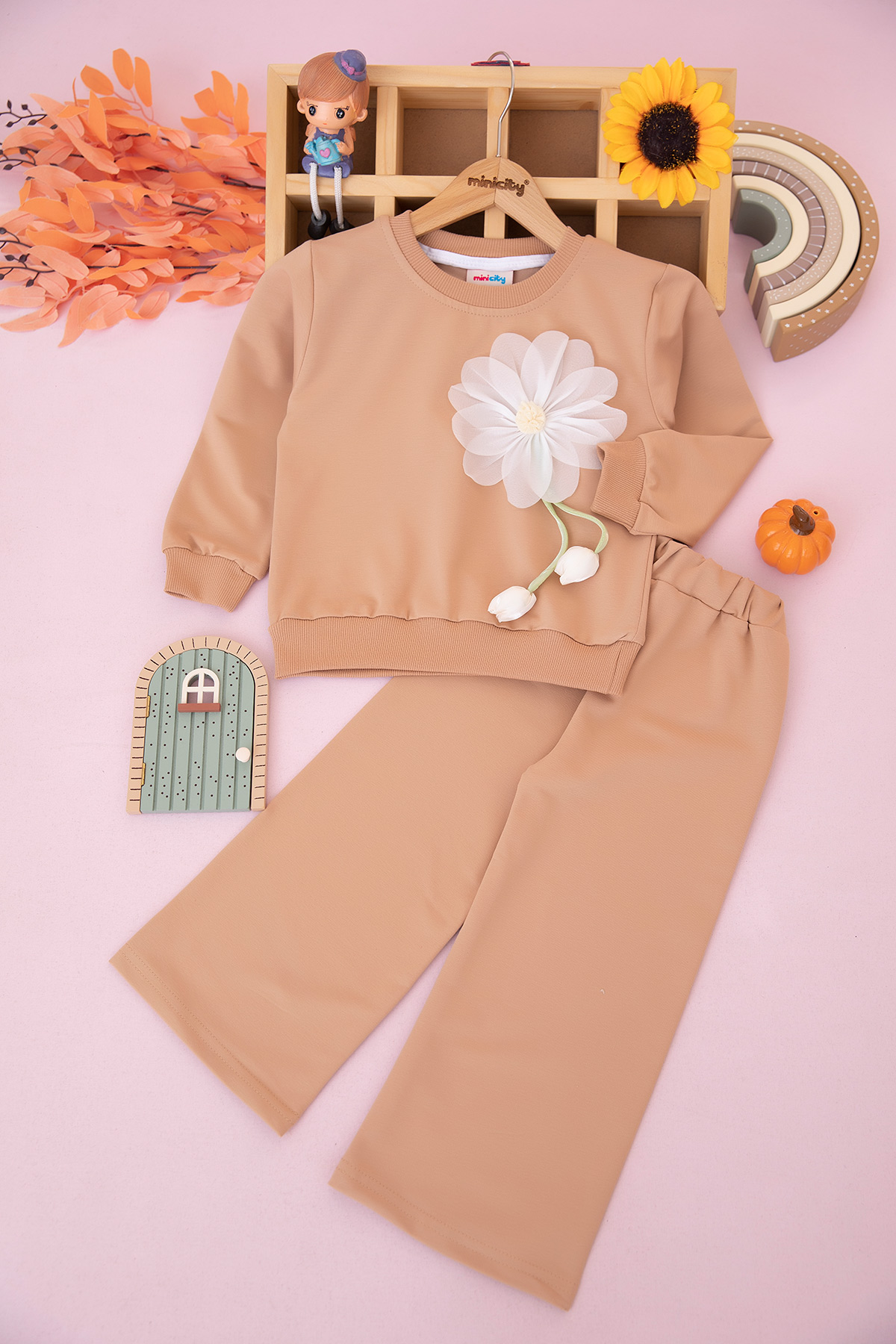 Kız Çocuk Gül Aksesuarlı Mevsimlik Takım (3-10 Yaş)