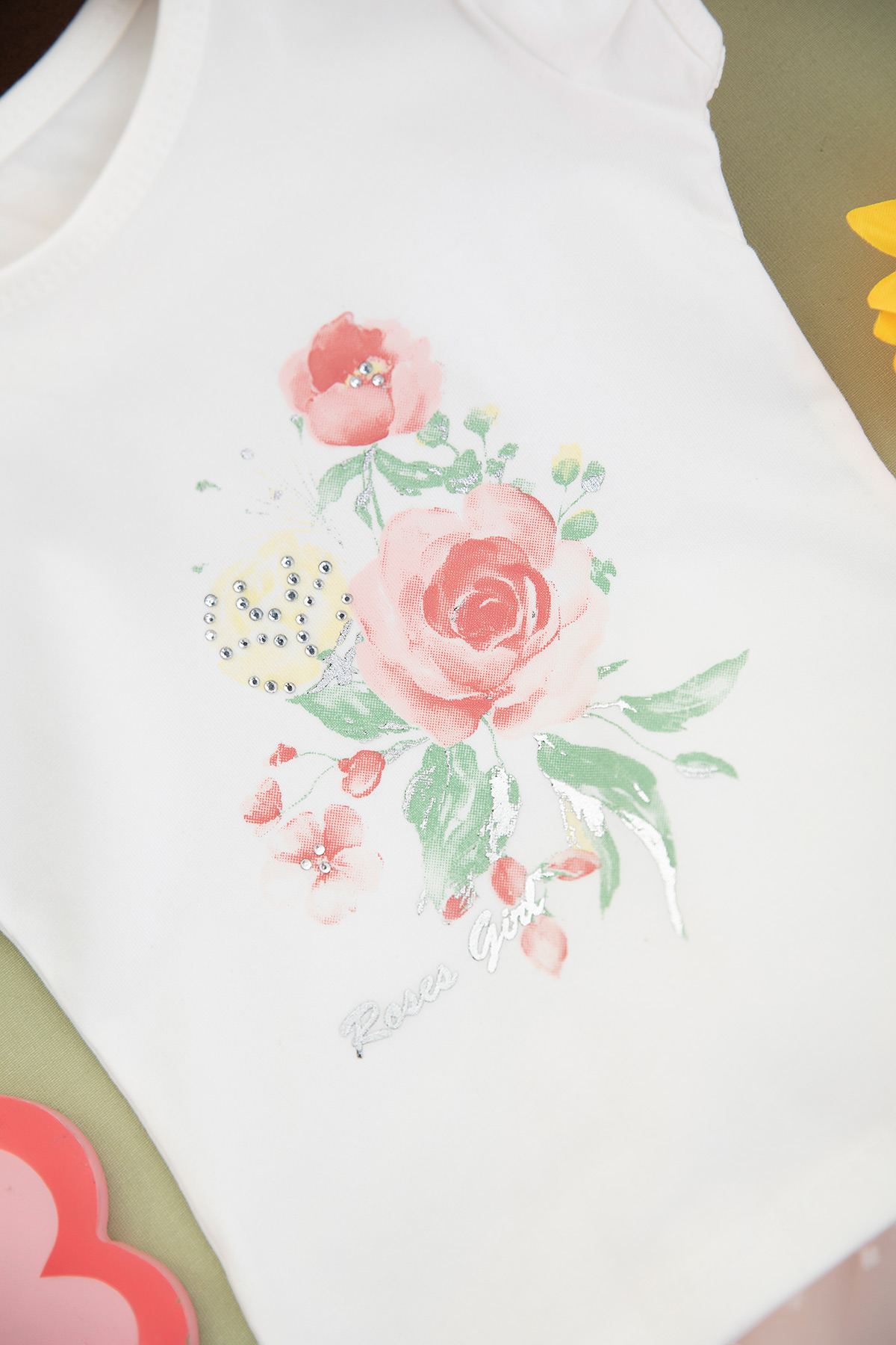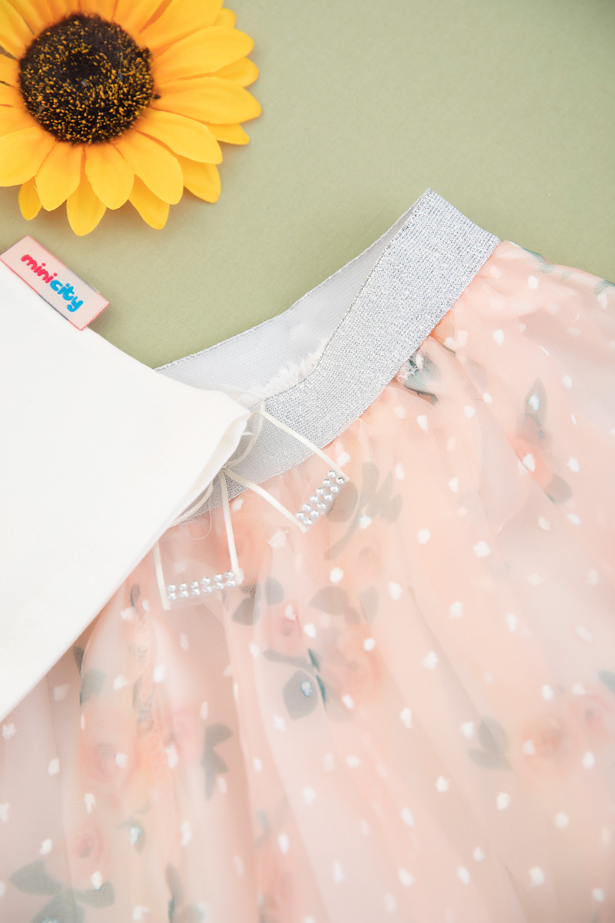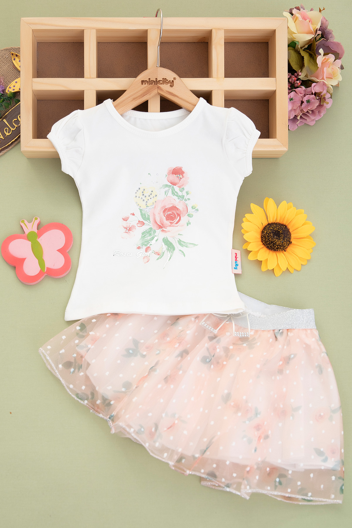 Kız Çocuk Gül Baskılı Tül Etekli Takım - 0466 (1-4 Yaş)