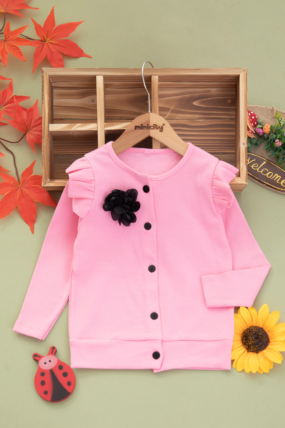 Kız Çocuk Gül Broşlu Kaşkorse Hırka (2-8 Yaş)