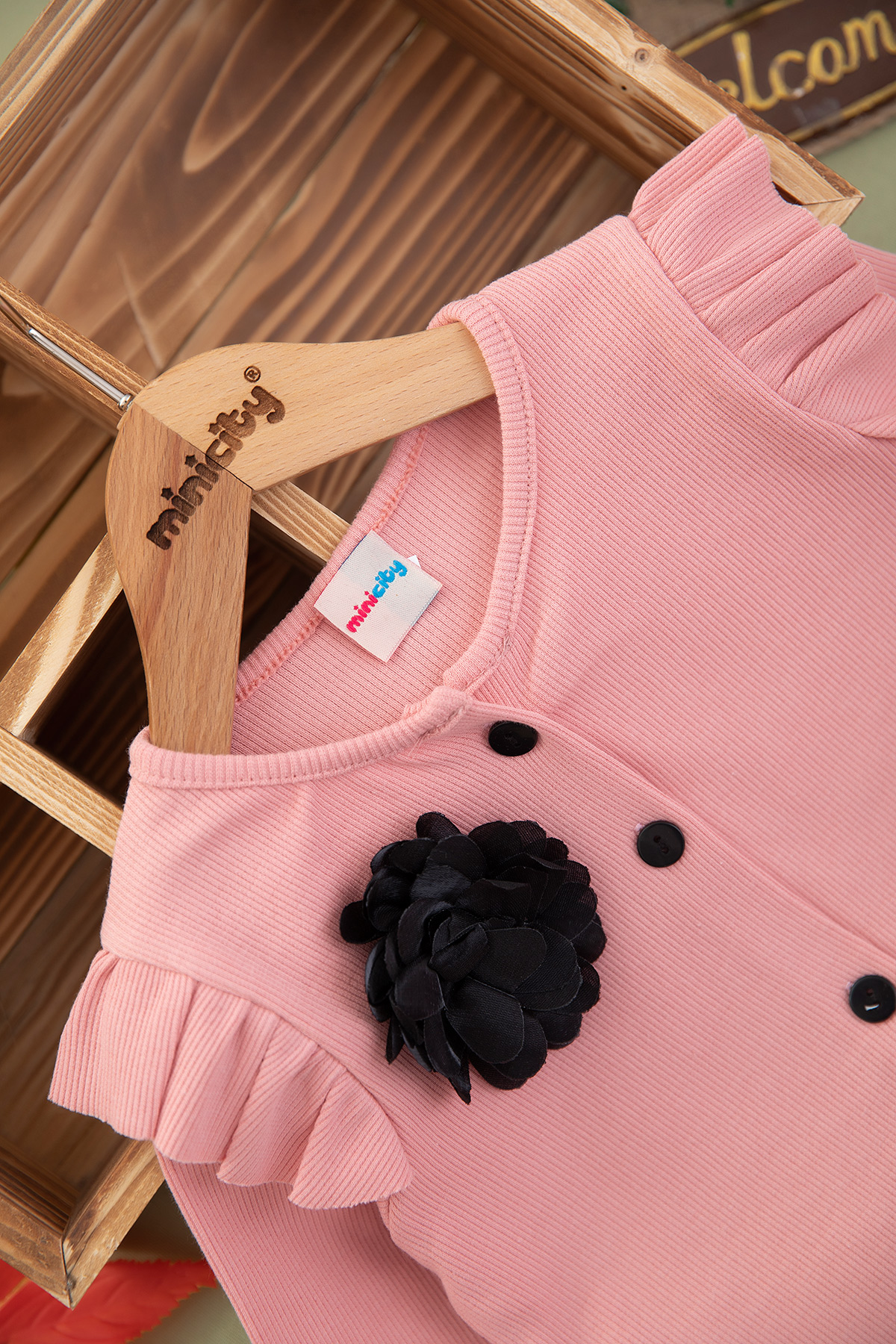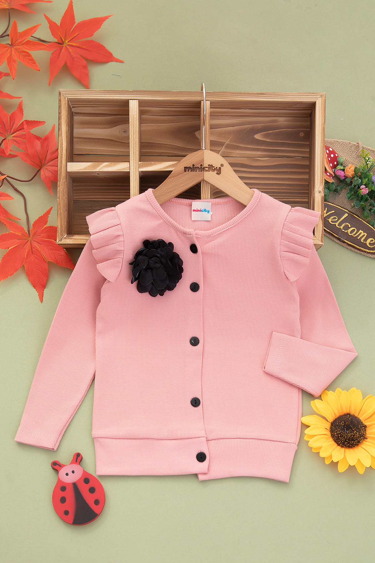 Kız Çocuk Gül Broşlu Kaşkorse Hırka (2-8 Yaş)