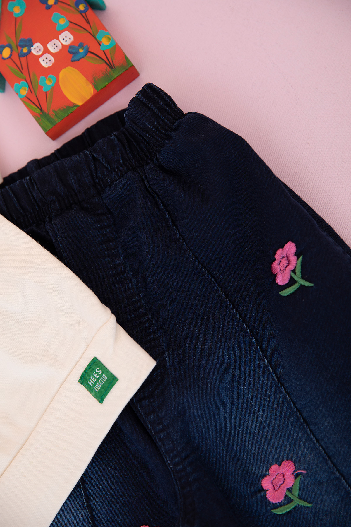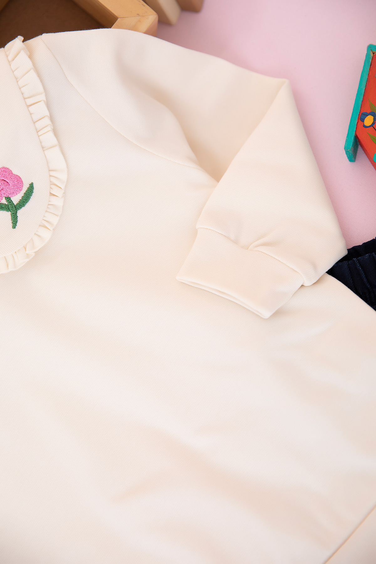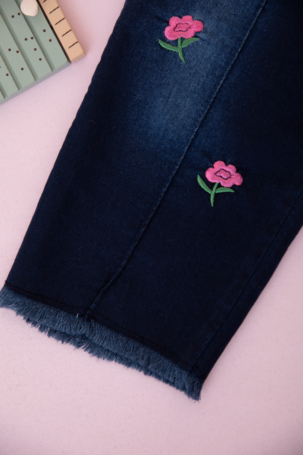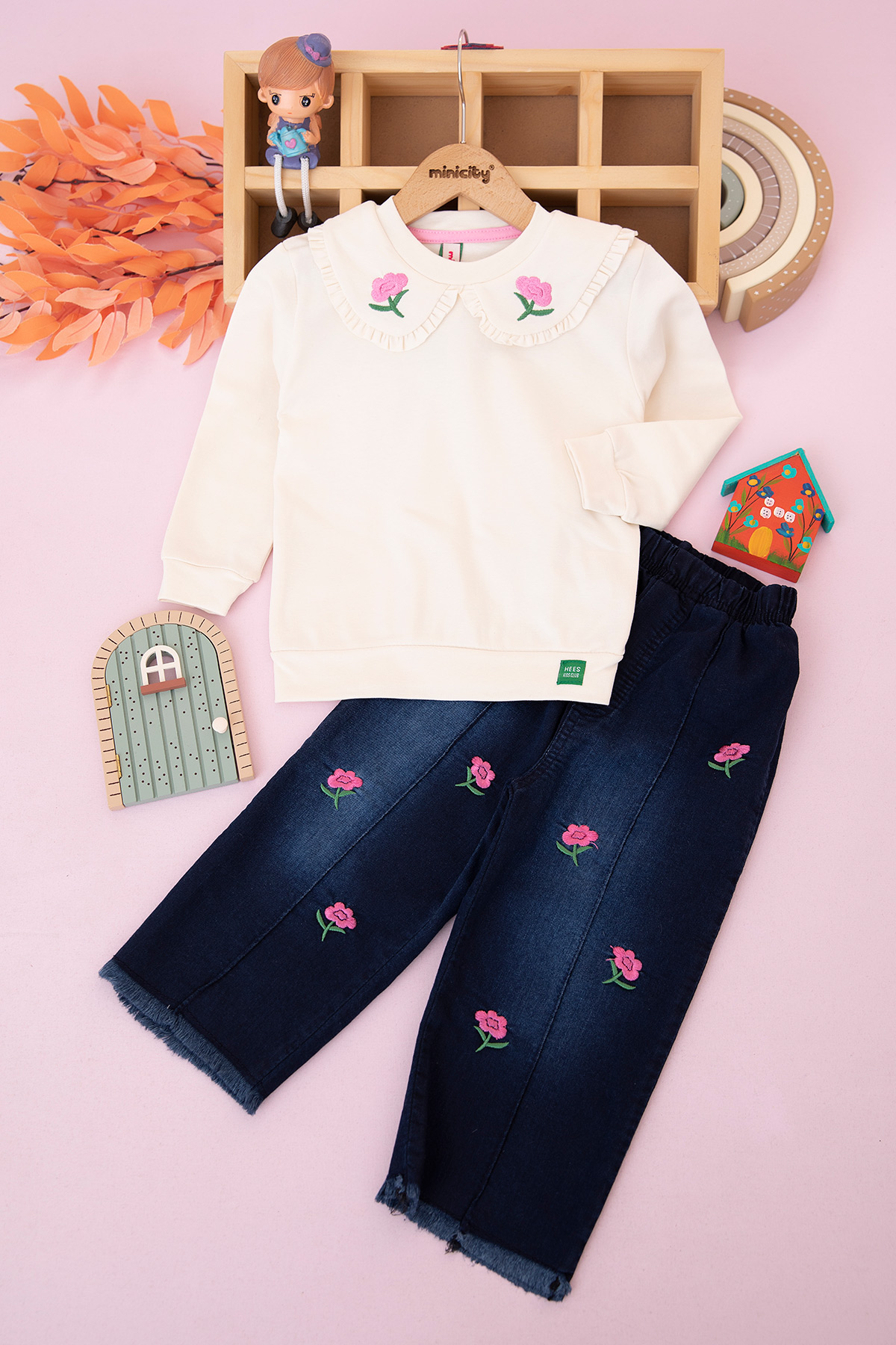 Kız Çocuk Gül Nakışlı Kot Pantolon Takım (2-7 Yaş)