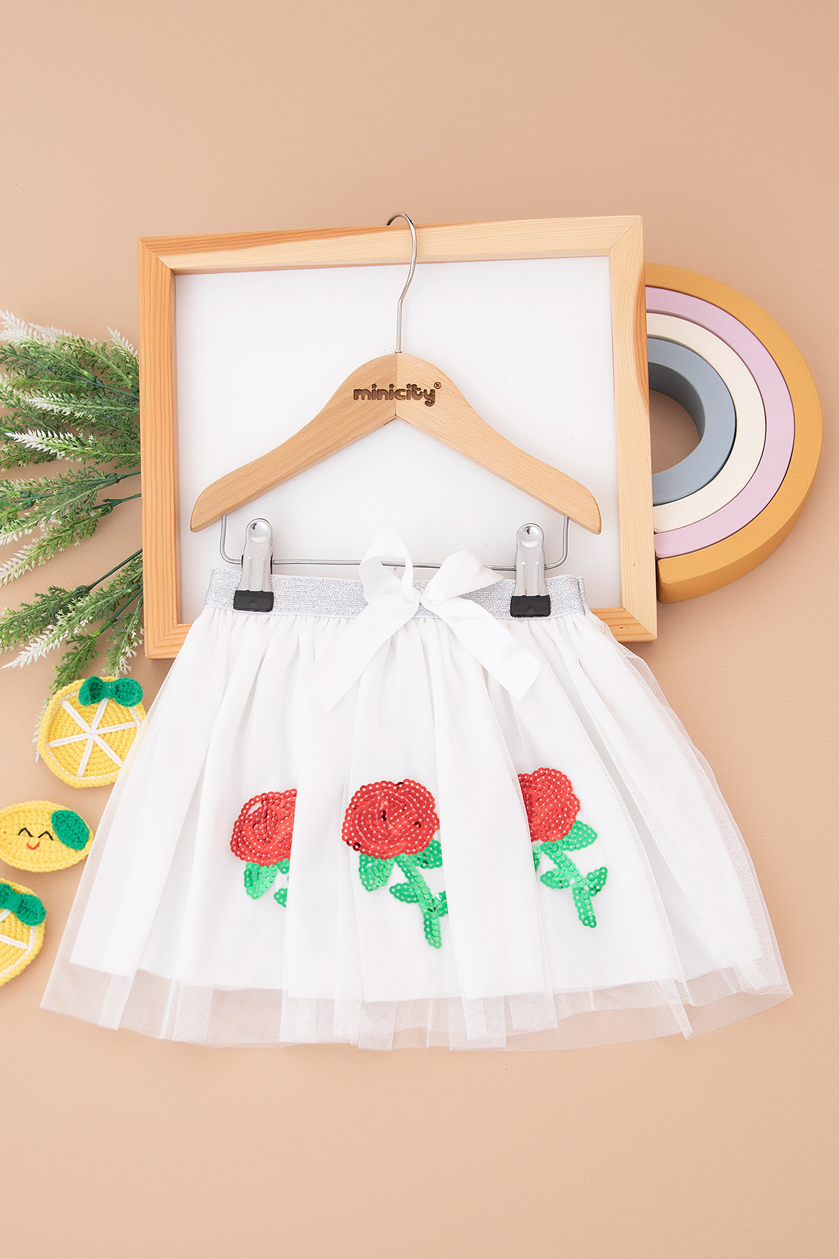 Kız Çocuk Gül Nakışlı Tütü Etek - 123505 (3-12 Yaş)