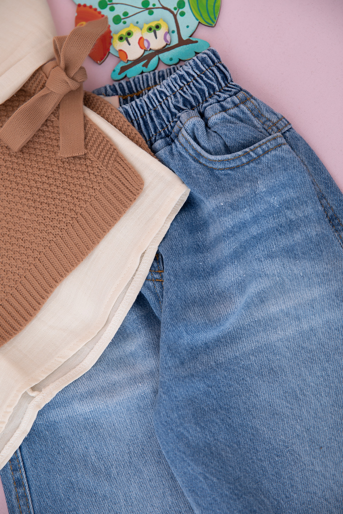 Kız Çocuk Gül Triko Süveter Takım - 1777 (6-9 Yaş)