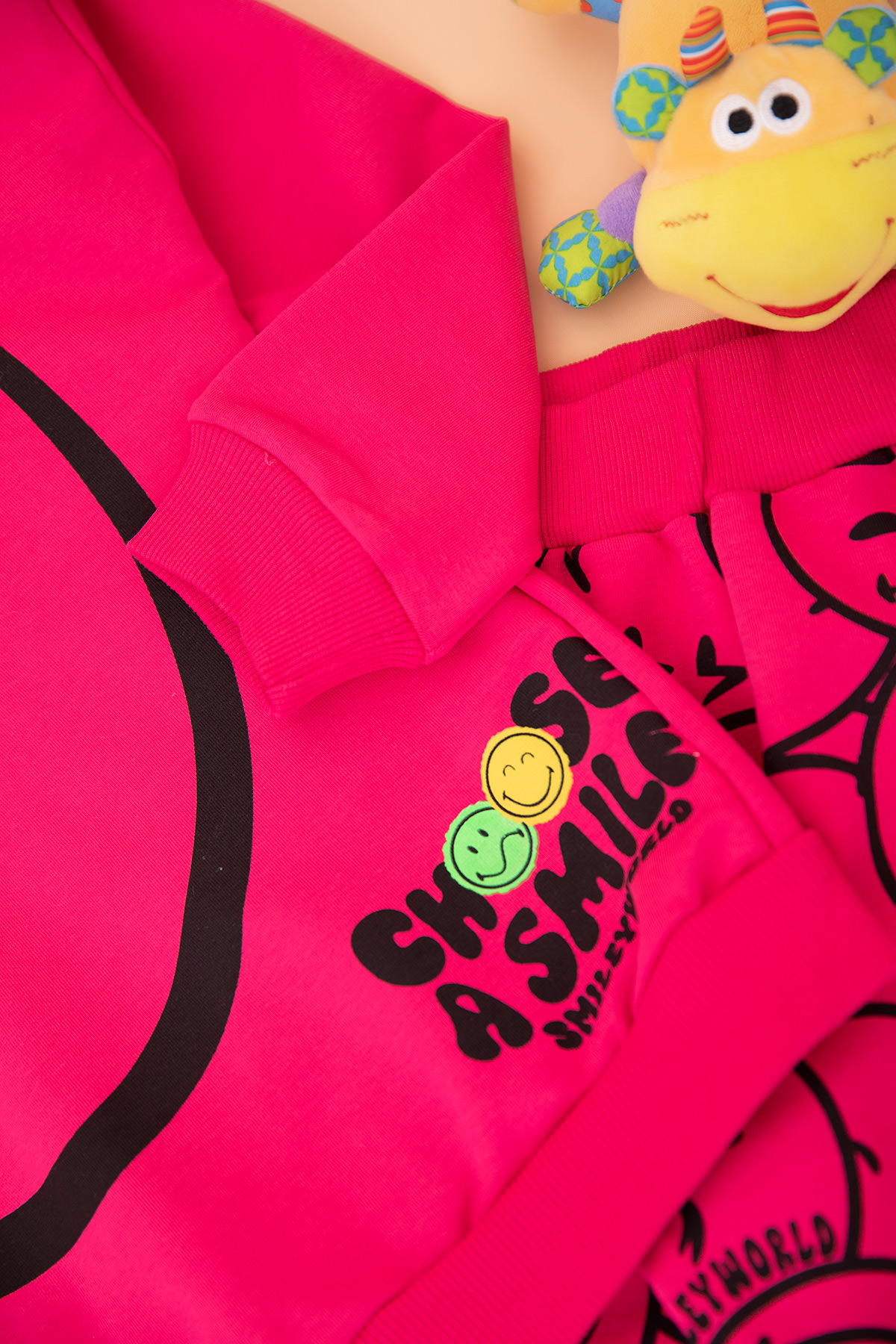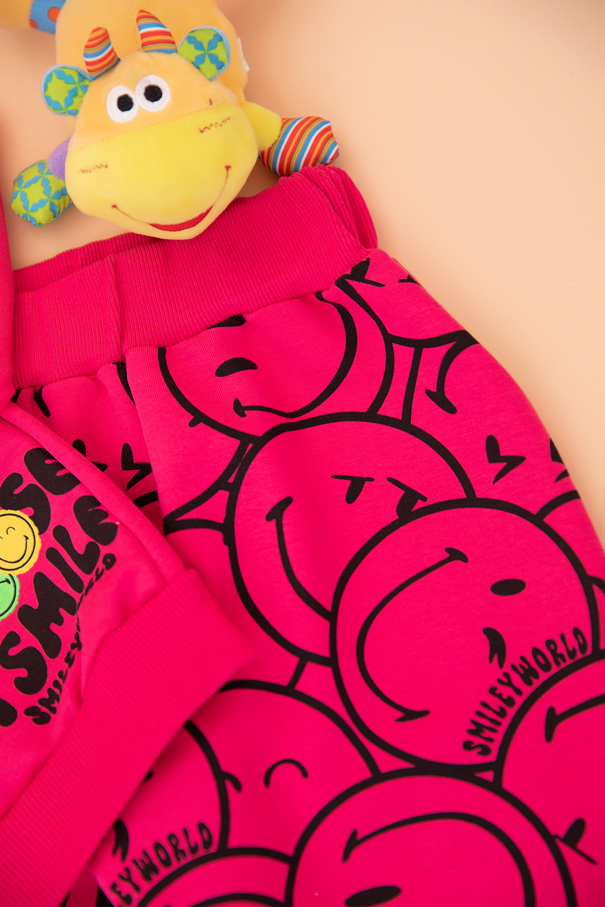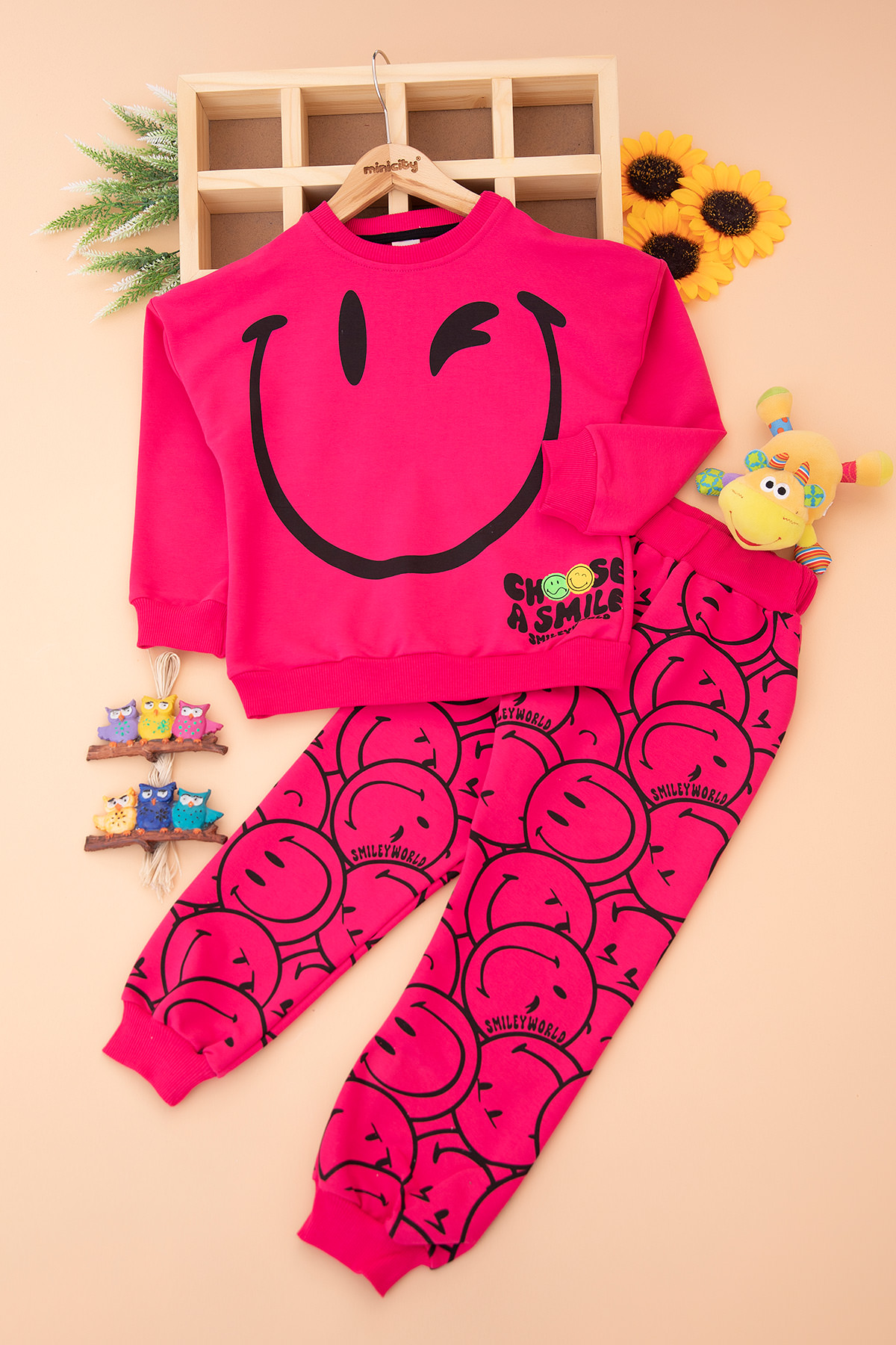 Kız Çocuk Gülen Yüz Baskılı Takım - 9617 (6-10 Yaş)