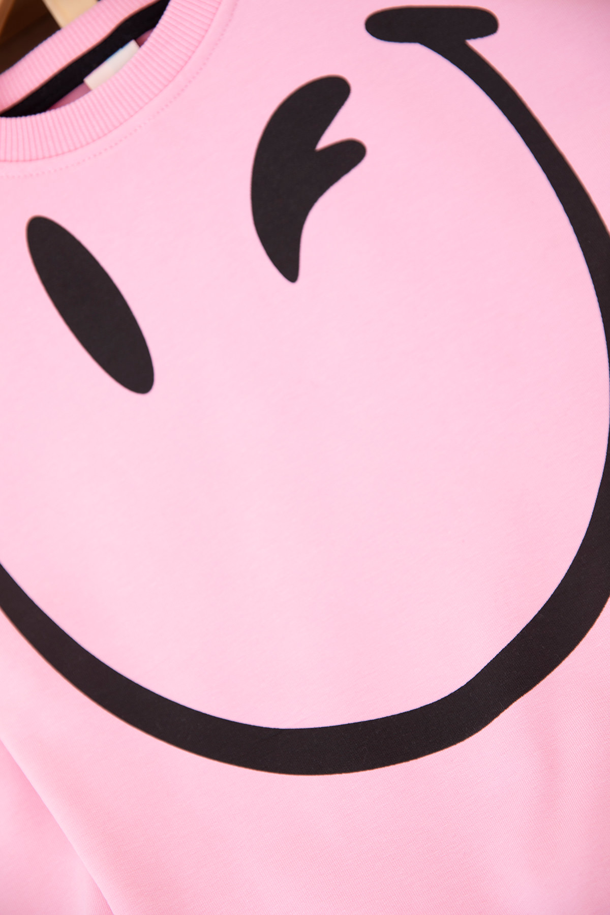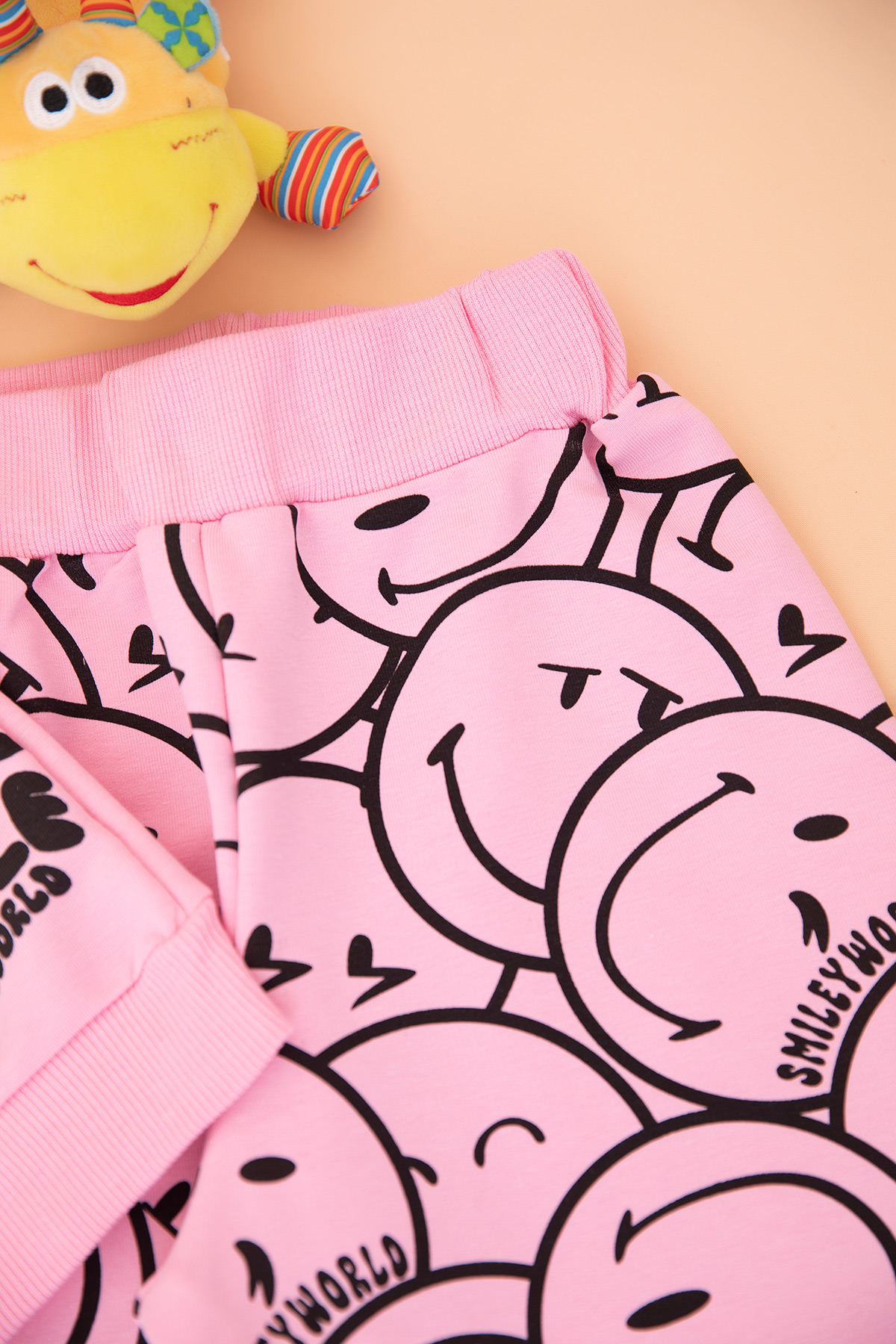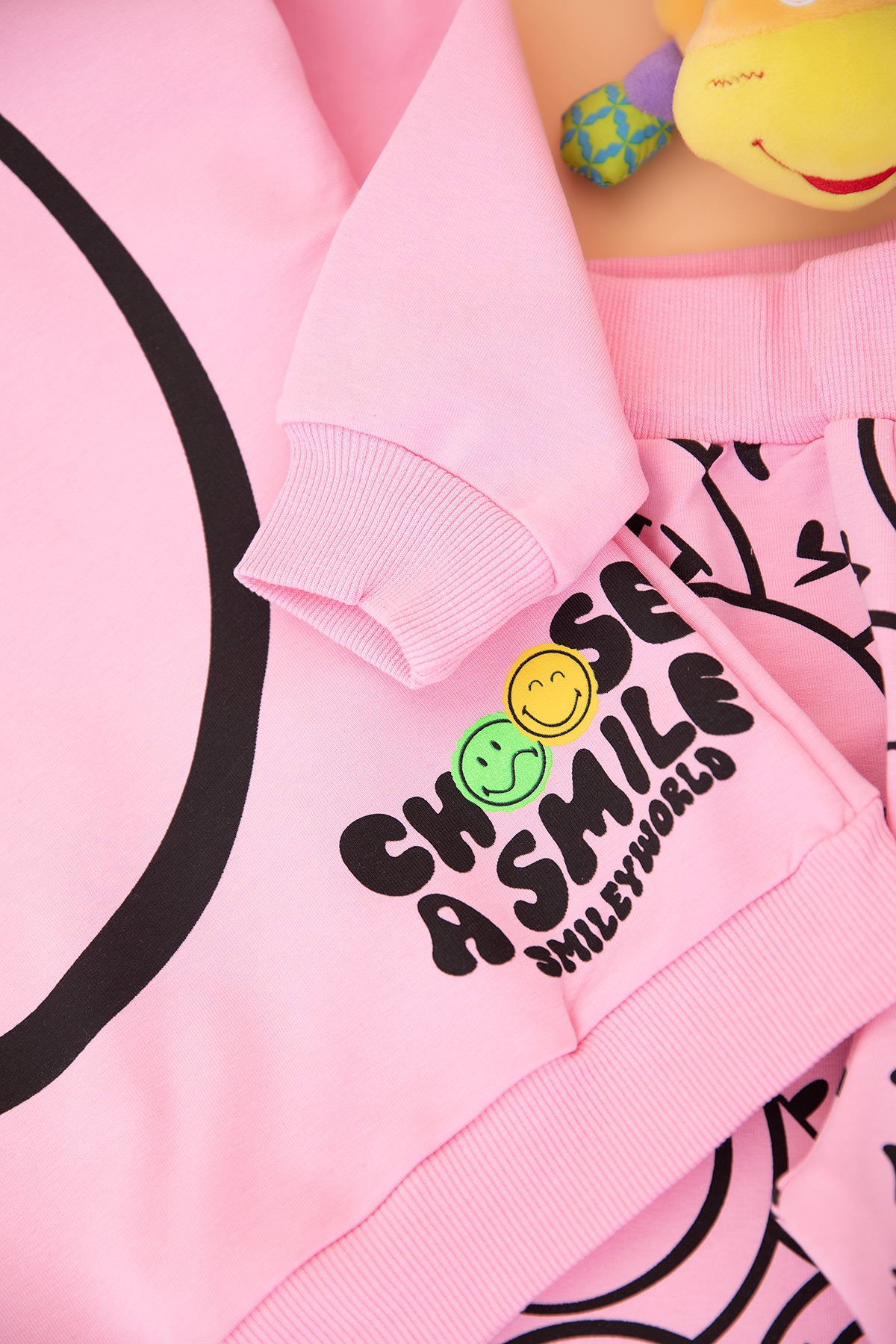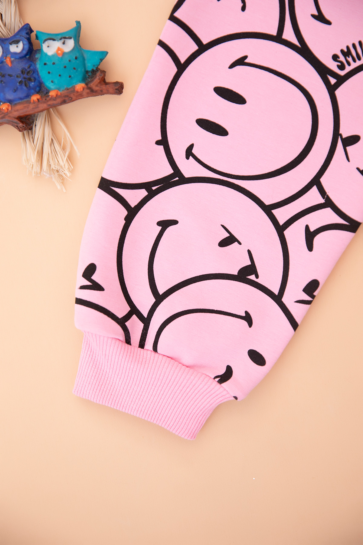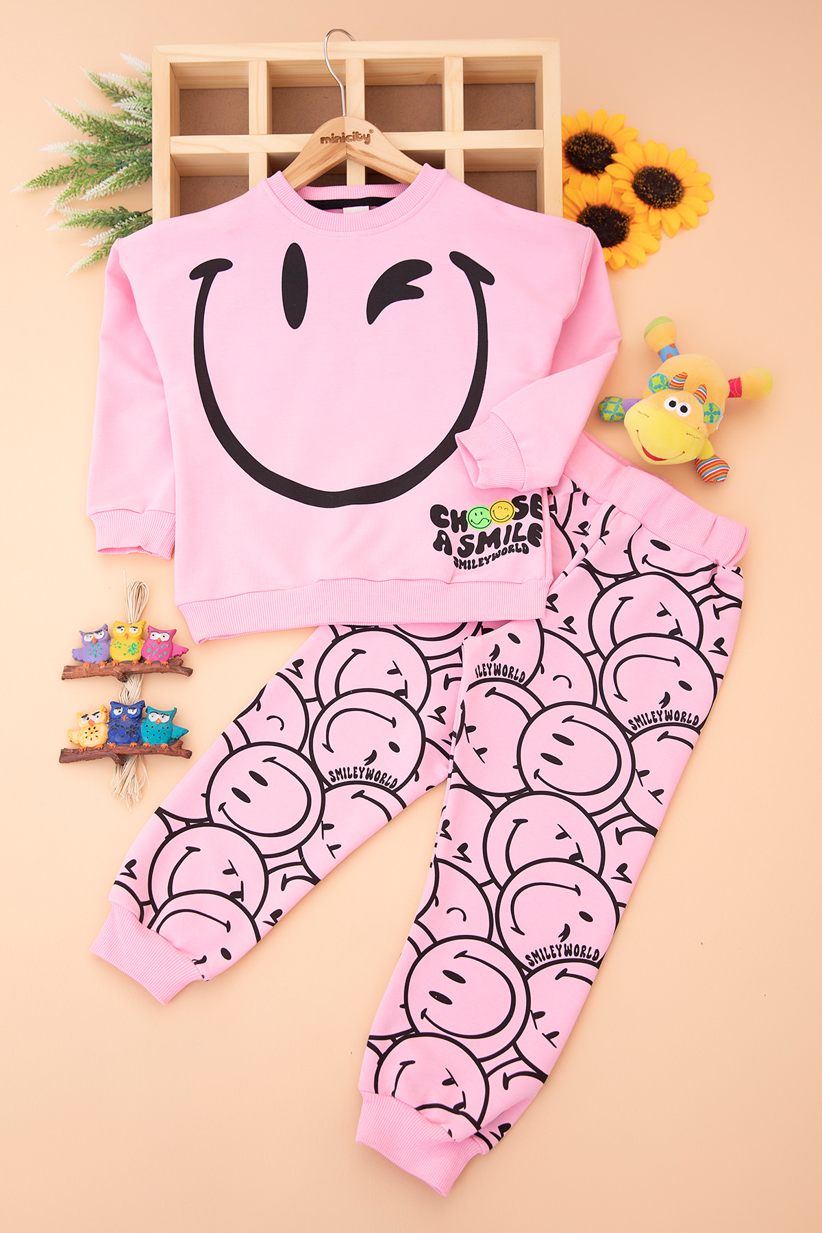 Kız Çocuk Gülen Yüz Baskılı Takım - 9617 (6-10 Yaş)