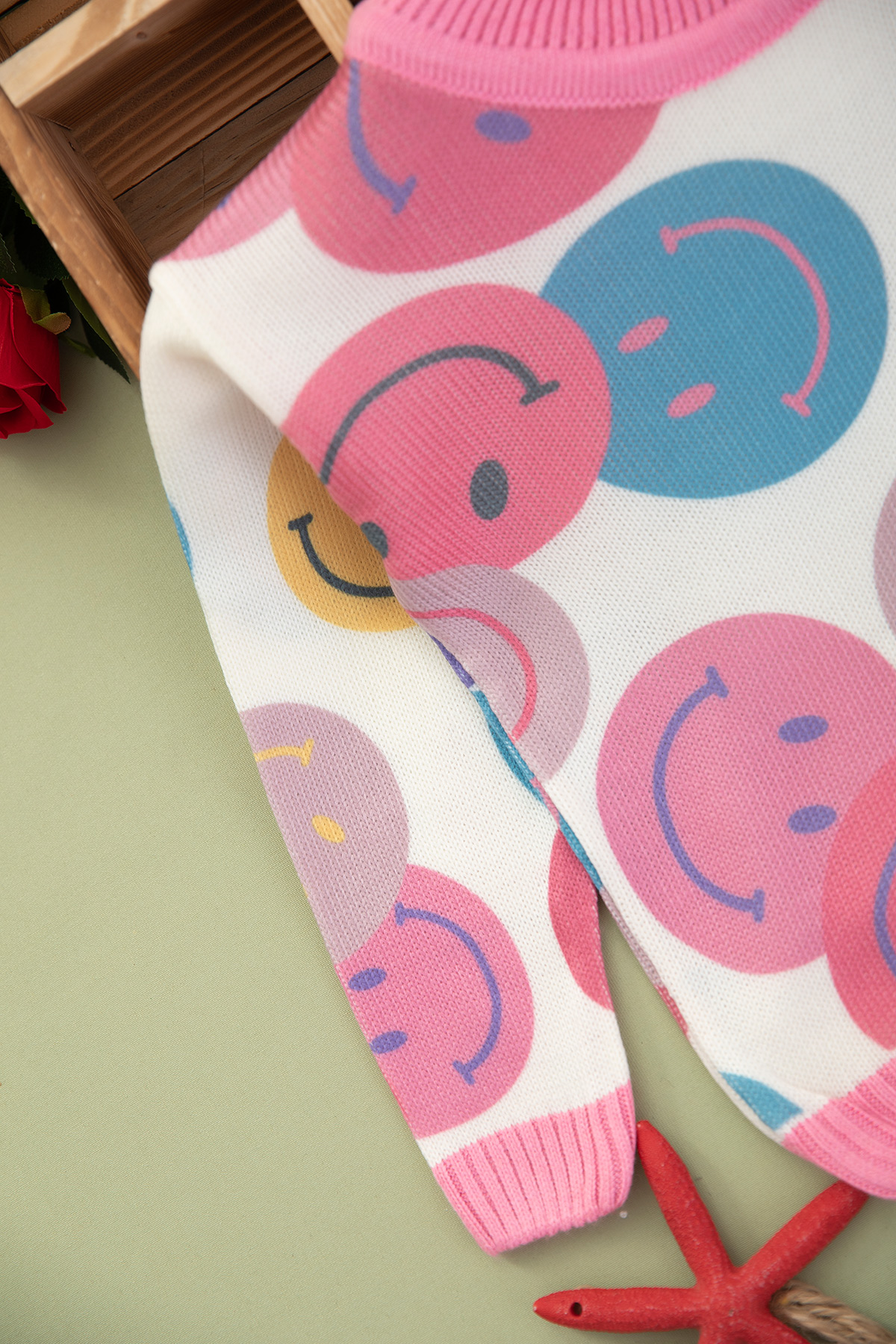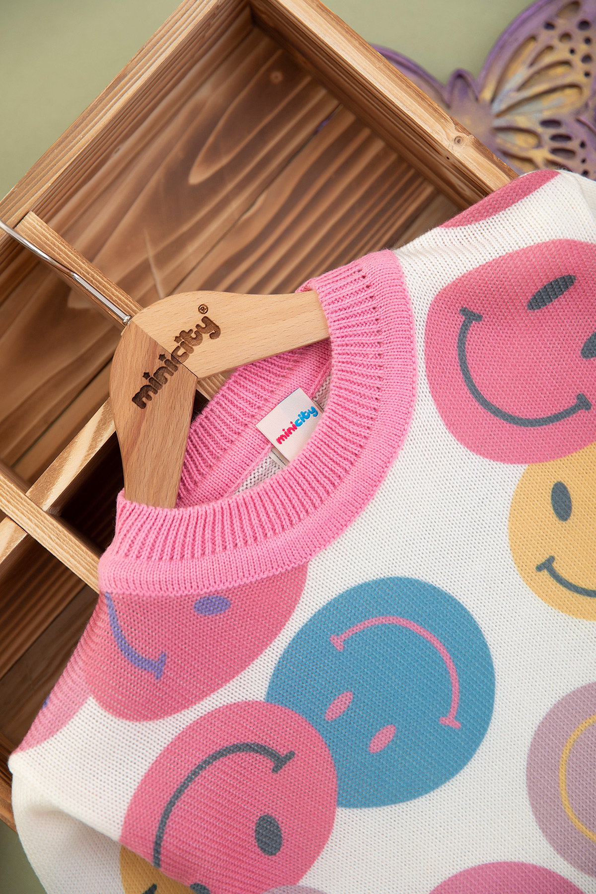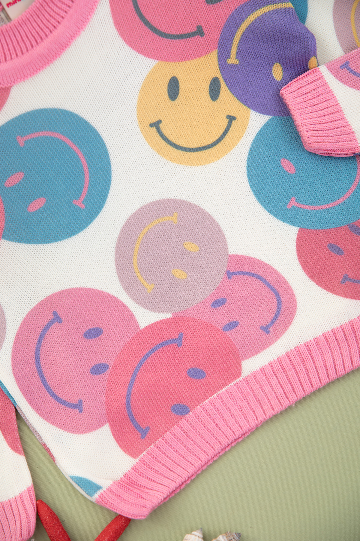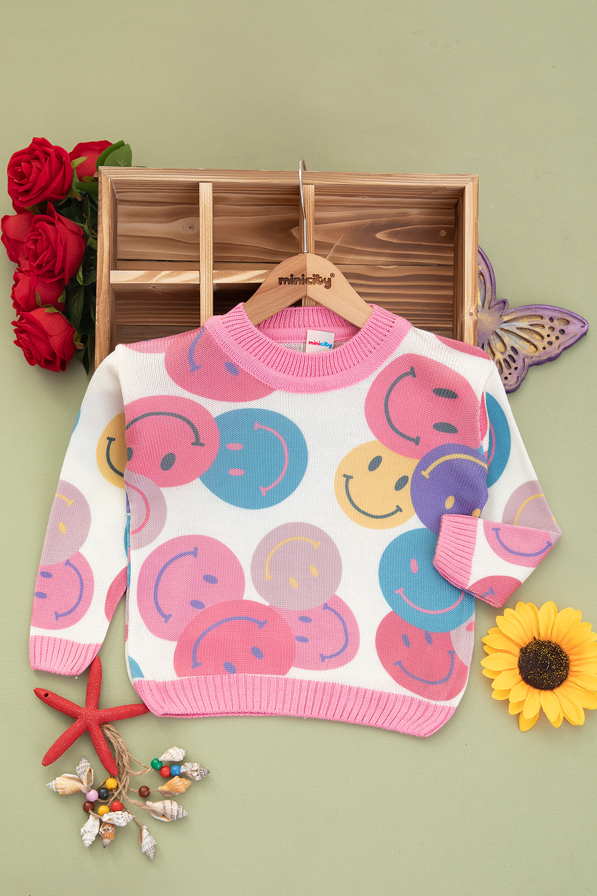 Kız Çocuk Gülenyüz Baskılı O Yaka Kazak (2-8 Yaş)