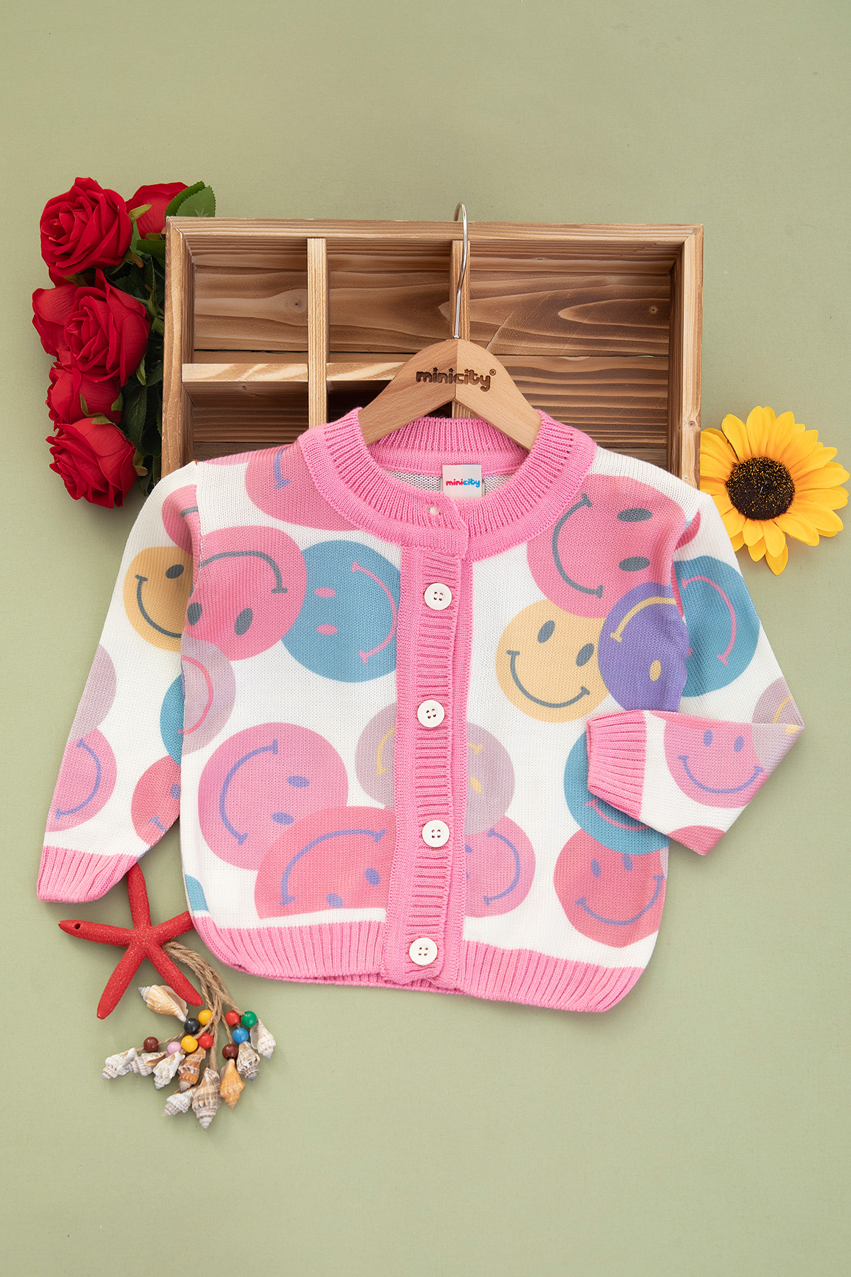 Kız Çocuk Gülenyüz Baskılı Triko Hırka (2-8 Yaş)
