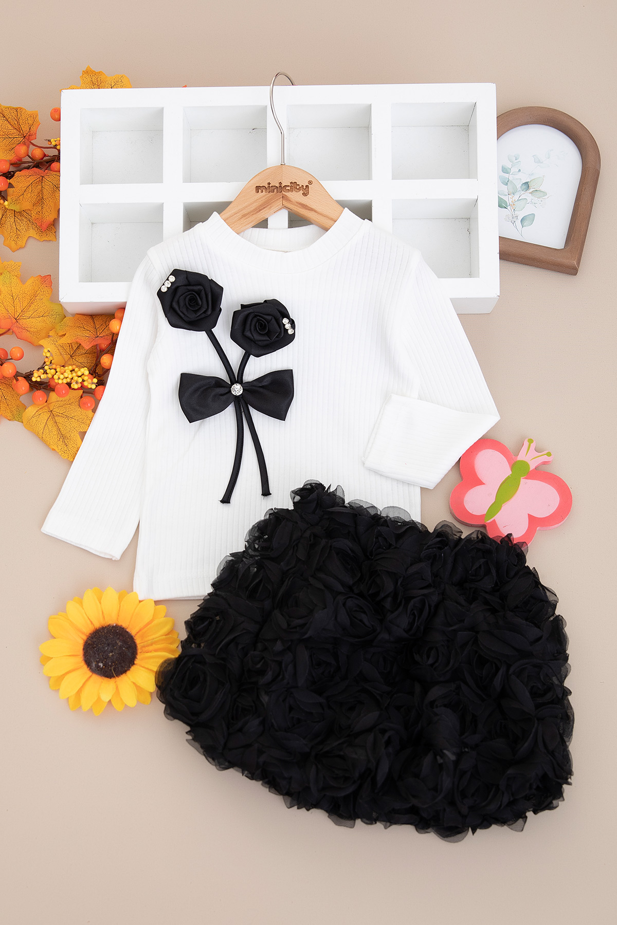 Kız Çocuk Güllü Balon Etekli Takım - 4131 (2-5 Yaş)