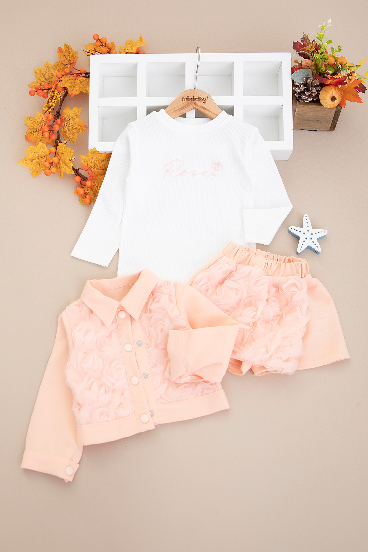 Kız Çocuk Güllü Ceketli Şort Takım - 4173 (6-9 Yaş)