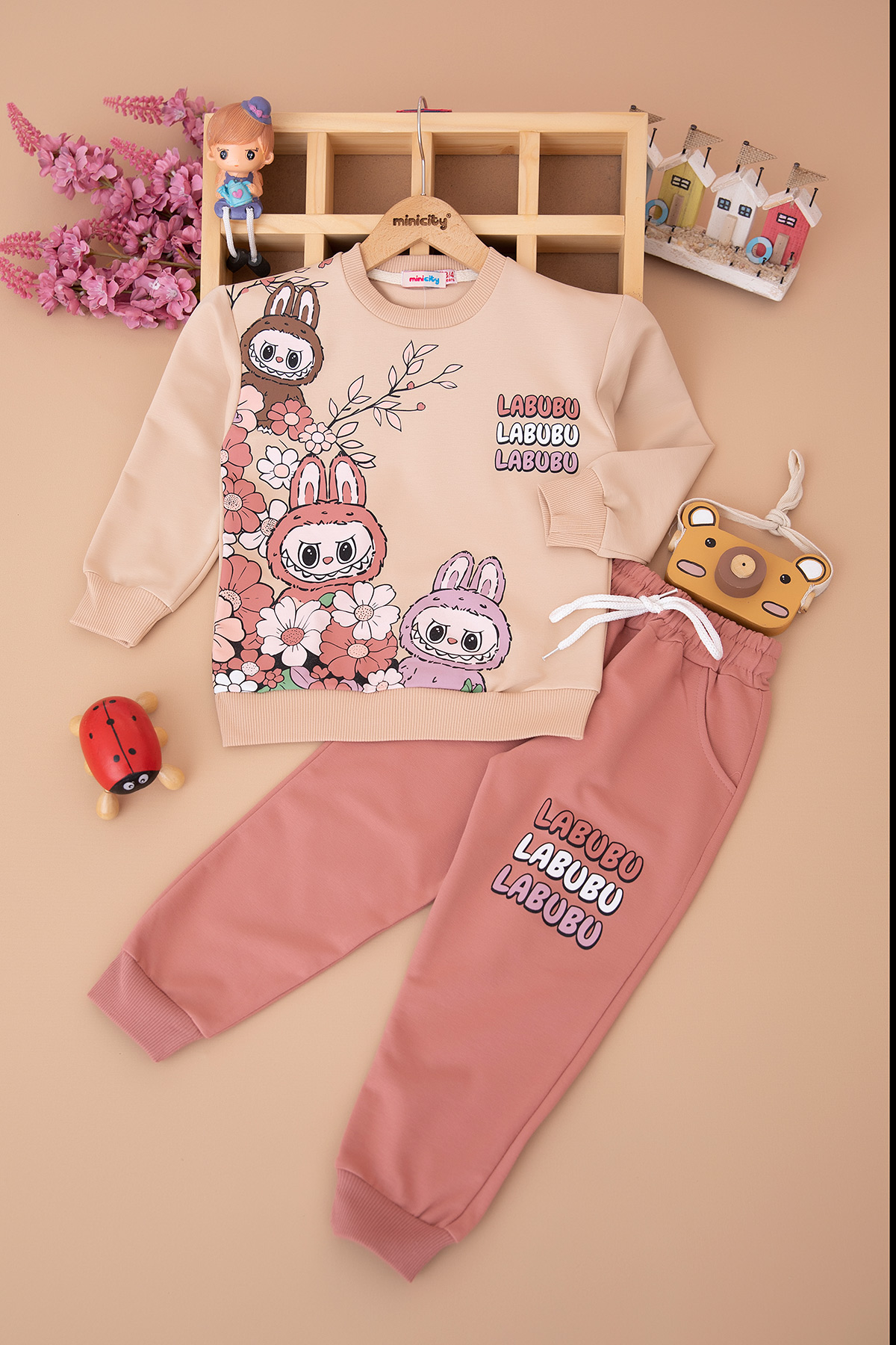 Kız Çocuk Güllü Labubu Baskılı Takım (3-10 Yaş)