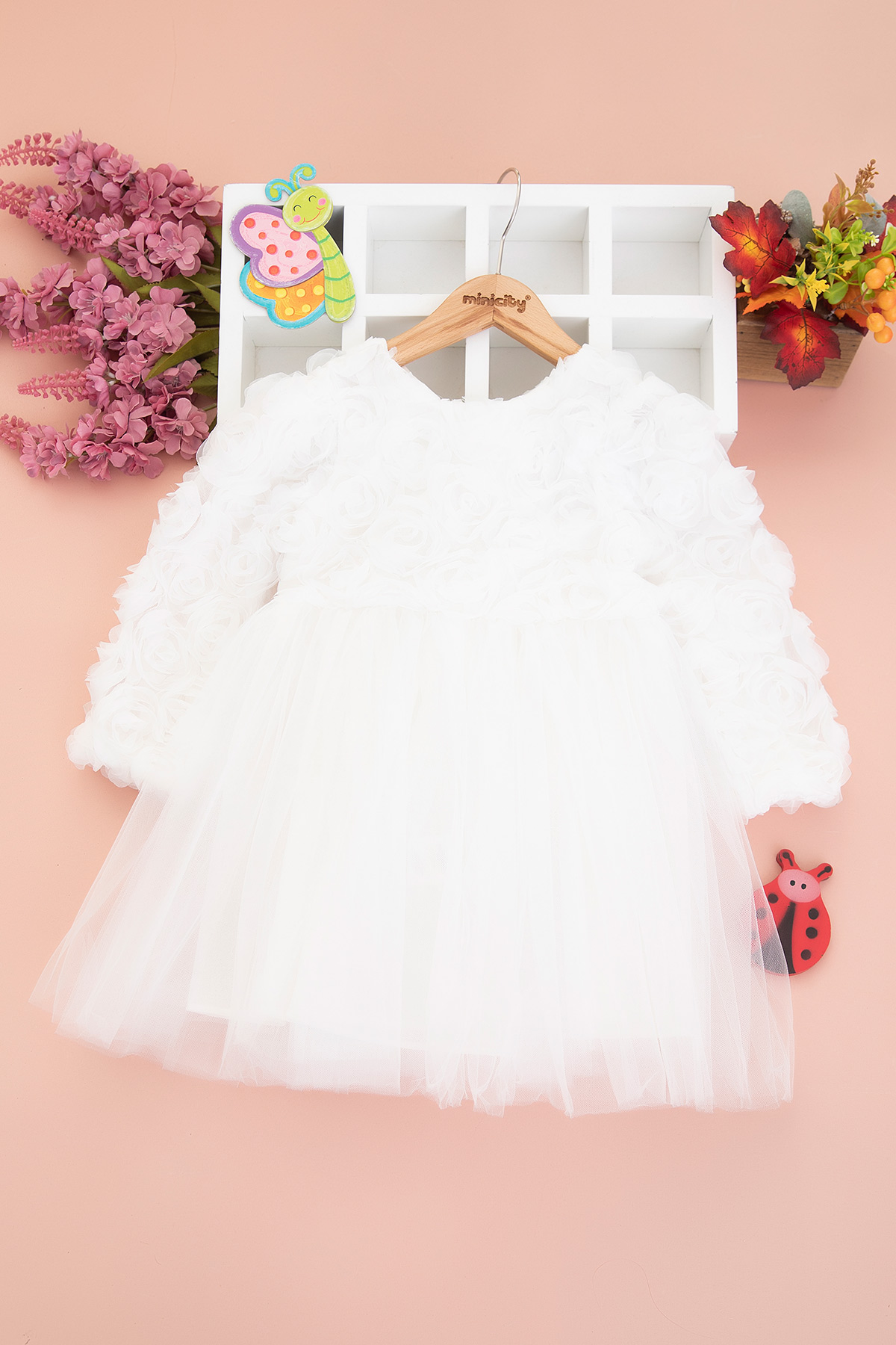 Kız Çocuk Güllü Uzun Kollu Elbise - 1020 (3-8 Yaş)